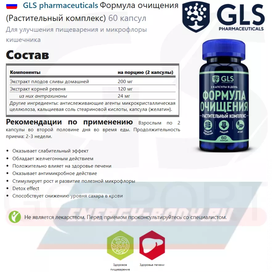 GLS pharmaceuticals Формула очищения (Растительный комплекс) 60 капсул — Для пищеварения, детокса и очищения