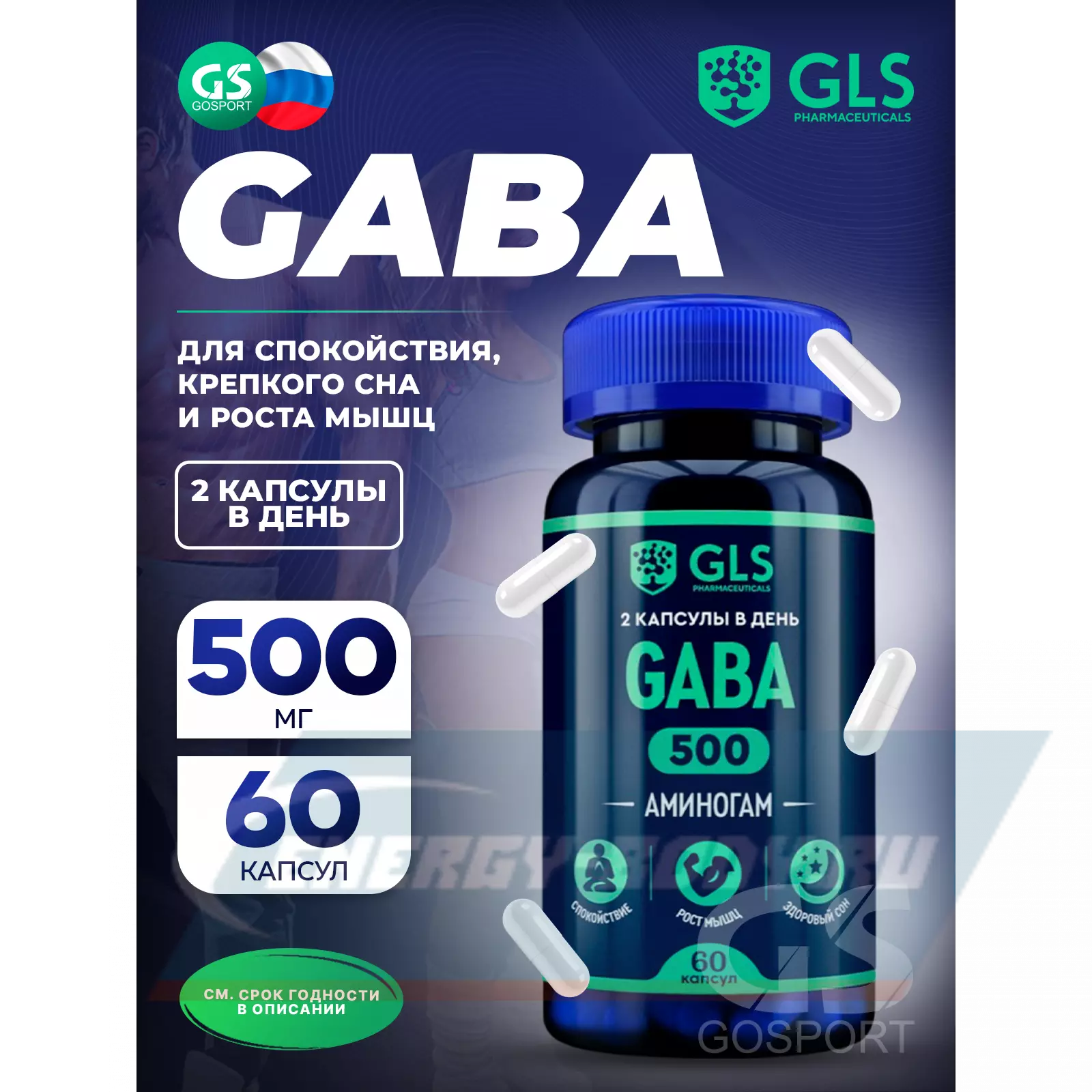 GLS pharmaceuticals GABA 500 мг (Аминогам) 60 капсул — Для спокойствия, сна и роста мышц