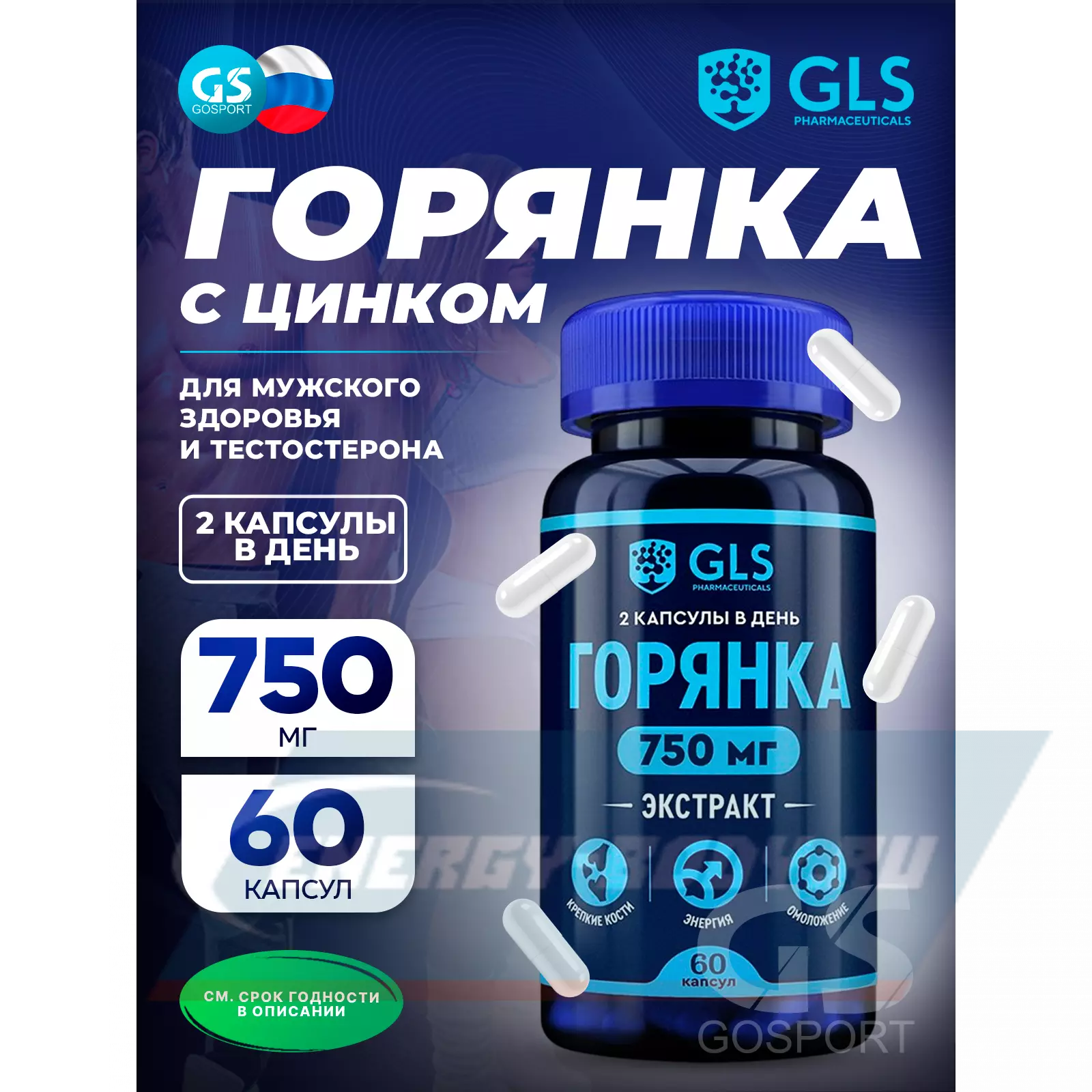 GLS pharmaceuticals Горянка (экстракт) 750 мг с цинком 60 капсул — Для костей, репродуктивной системы и энергии