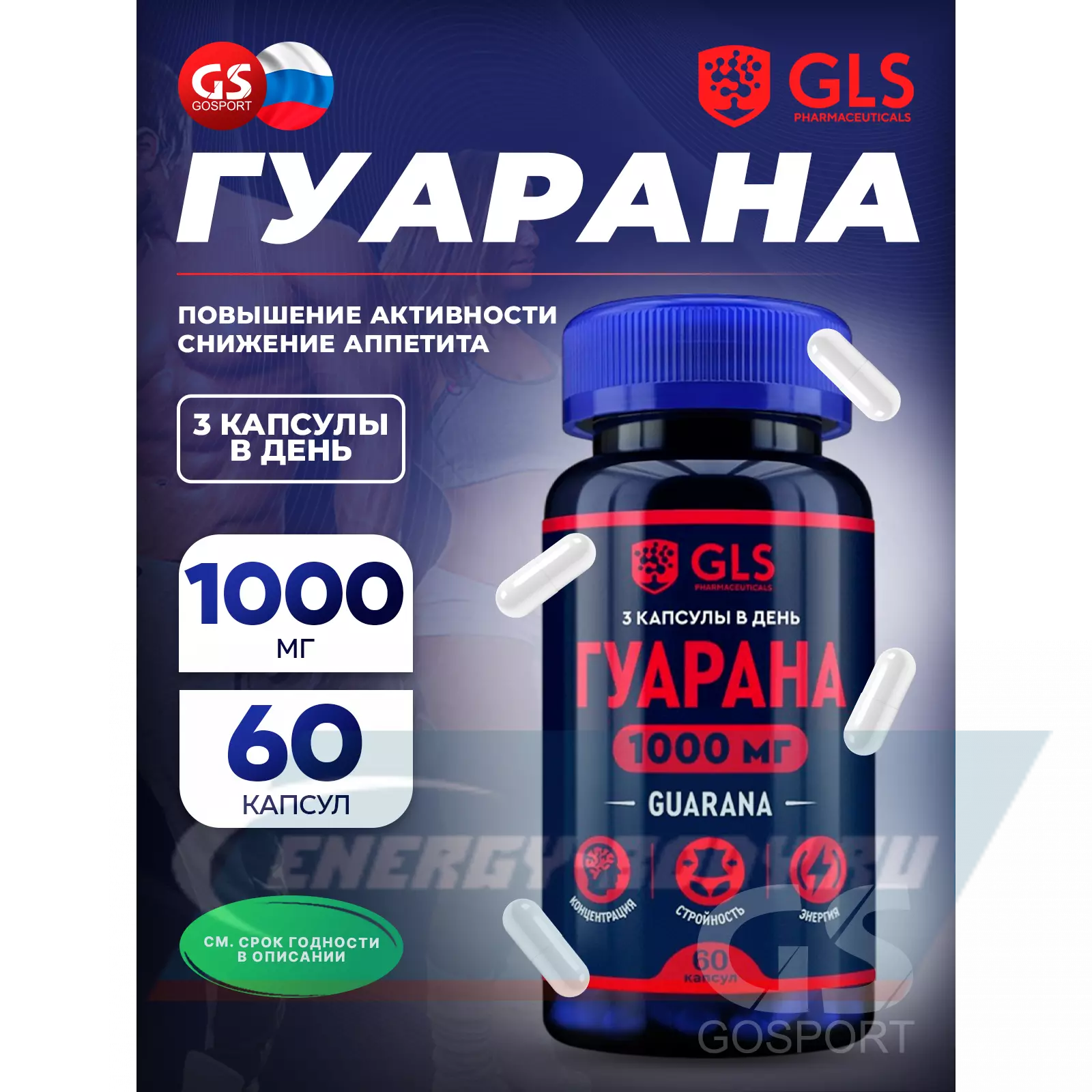 GLS pharmaceuticals Гуарана 1000 мг 60 капсул — для энергии, снижения аппетита и концентрации внимания