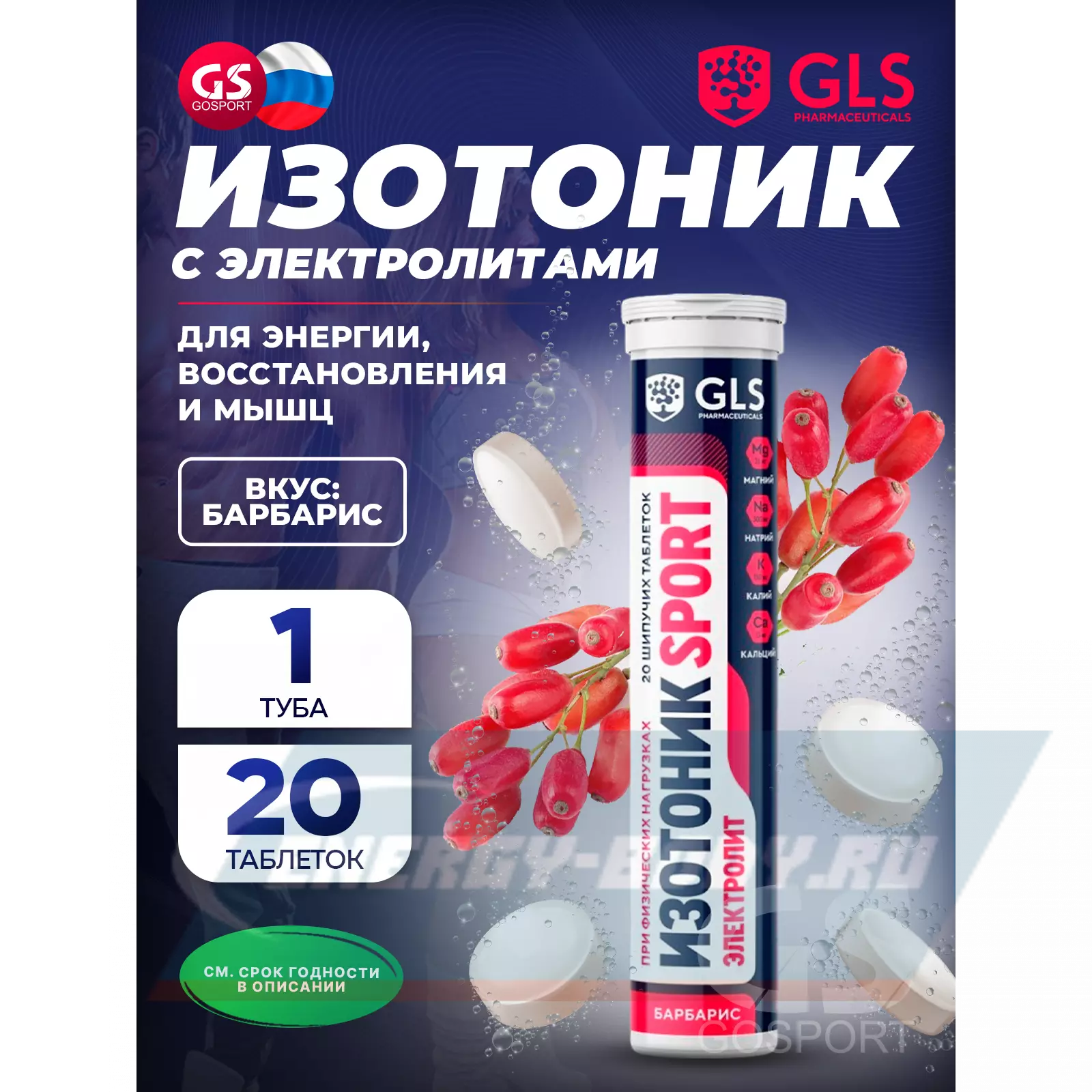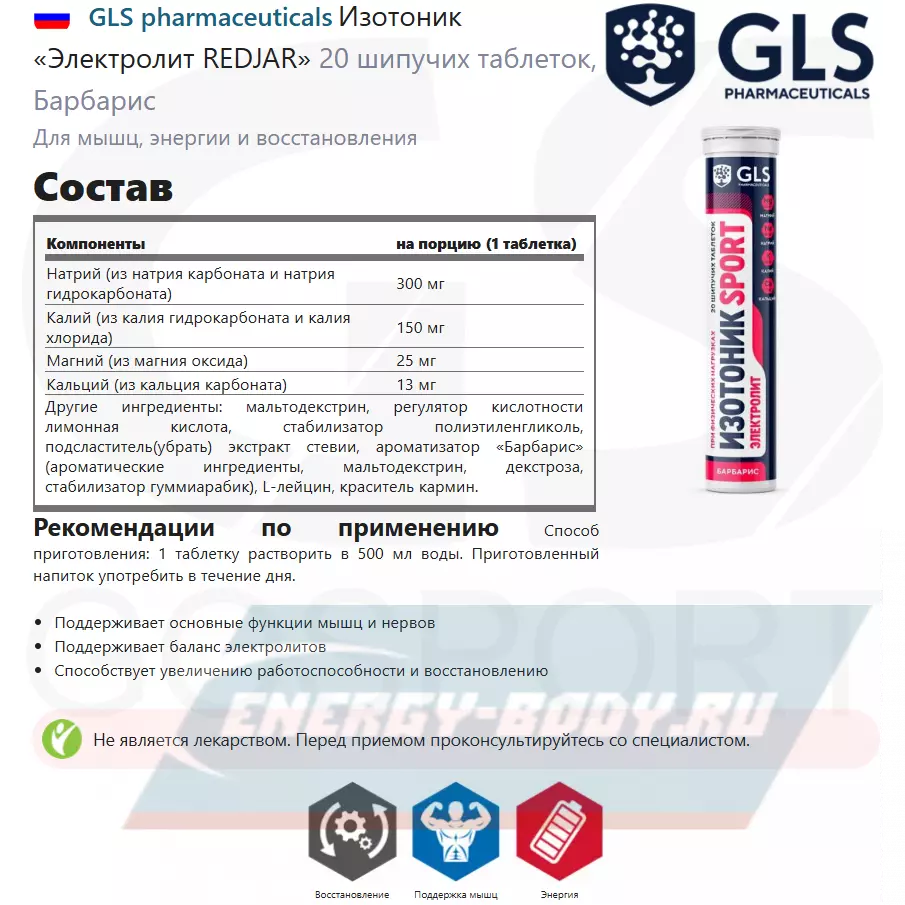 GLS pharmaceuticals Изотоник «Электролит REDJAR» 20 шипучих таблеток, Барбарис — Поддержание баланса электролитов и увеличение работоспособности