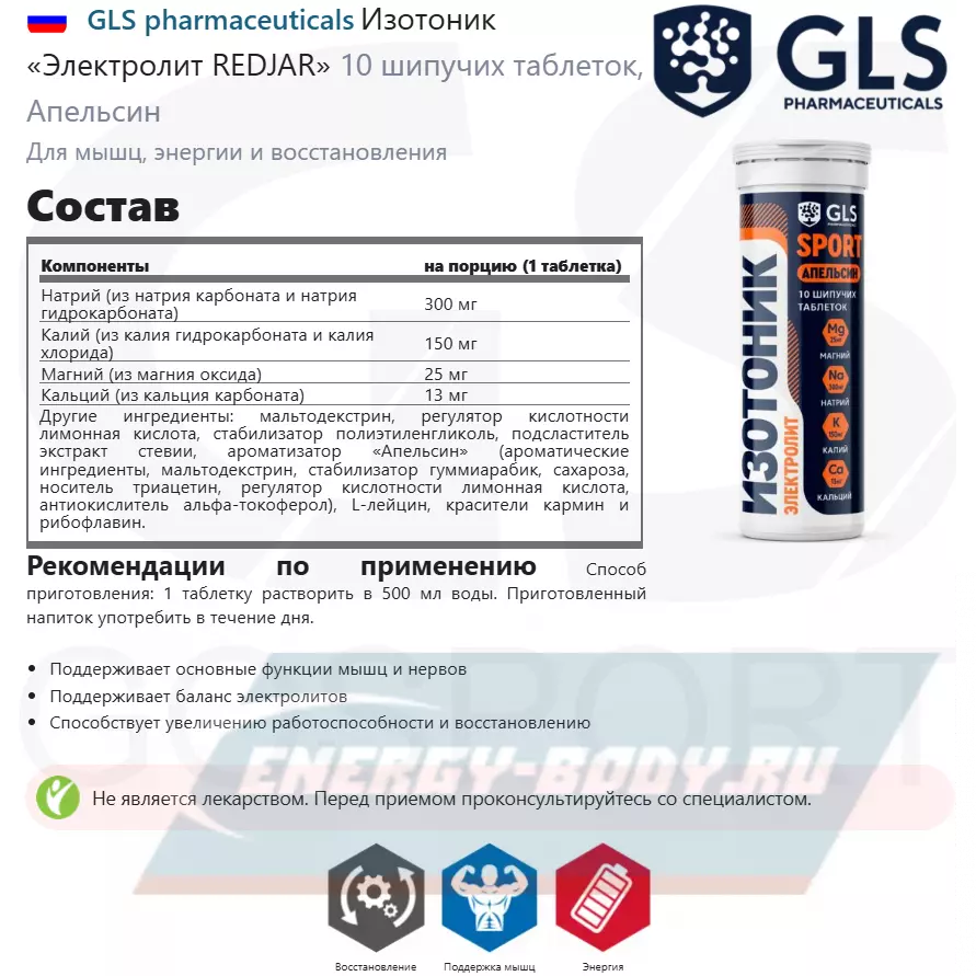 Состав GLS pharmaceuticals Изотоник «Электролит REDJAR»