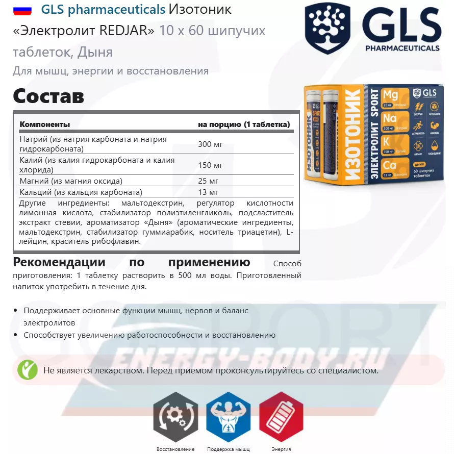 Состав GLS pharmaceuticals Изотоник «Электролит REDJAR»