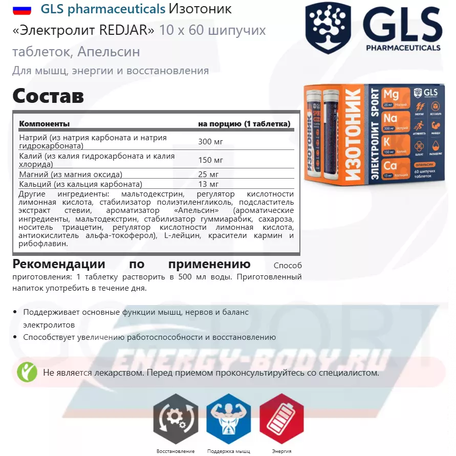 Состав GLS pharmaceuticals Изотоник «Электролит REDJAR»