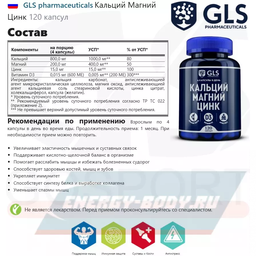Состав GLS pharmaceuticals Кальций Магний Цинк