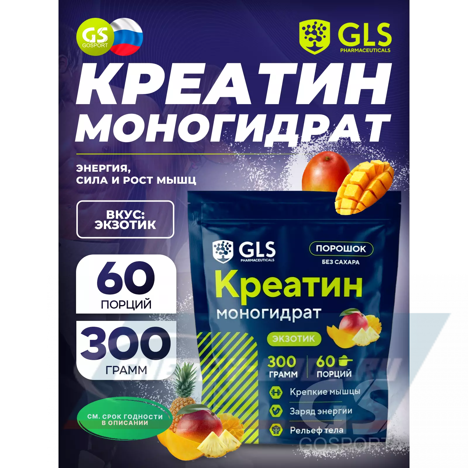 GLS pharmaceuticals Креатин моногидрат (Creatine Monohydrate) 300 г, Экзотик — Увеличивает силу, рост сухой мышечной массы и ускоряет восстановление