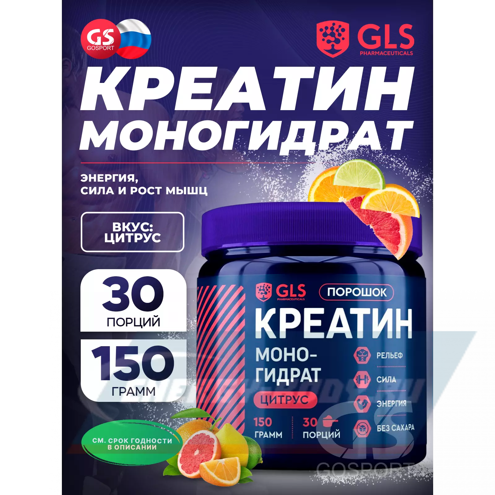 GLS pharmaceuticals Креатин моногидрат (Creatine Monohydrate) 150 г, Цитрус — Увеличивает силу, рост сухой мышечной массы и ускоряет восстановление