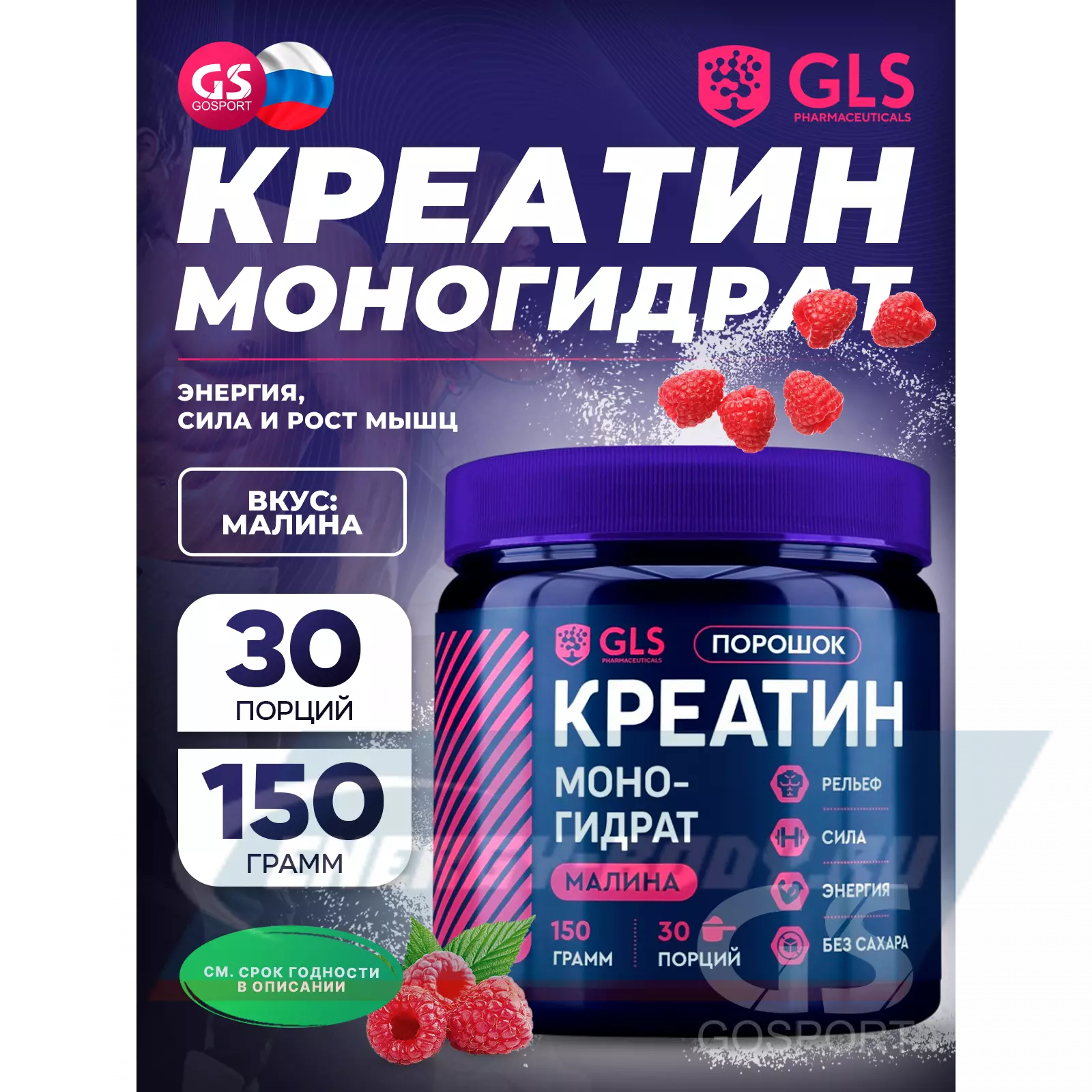 GLS pharmaceuticals Креатин моногидрат (Creatine Monohydrate) 150 г, Малина — Увеличивает силу, рост сухой мышечной массы и ускоряет восстановление