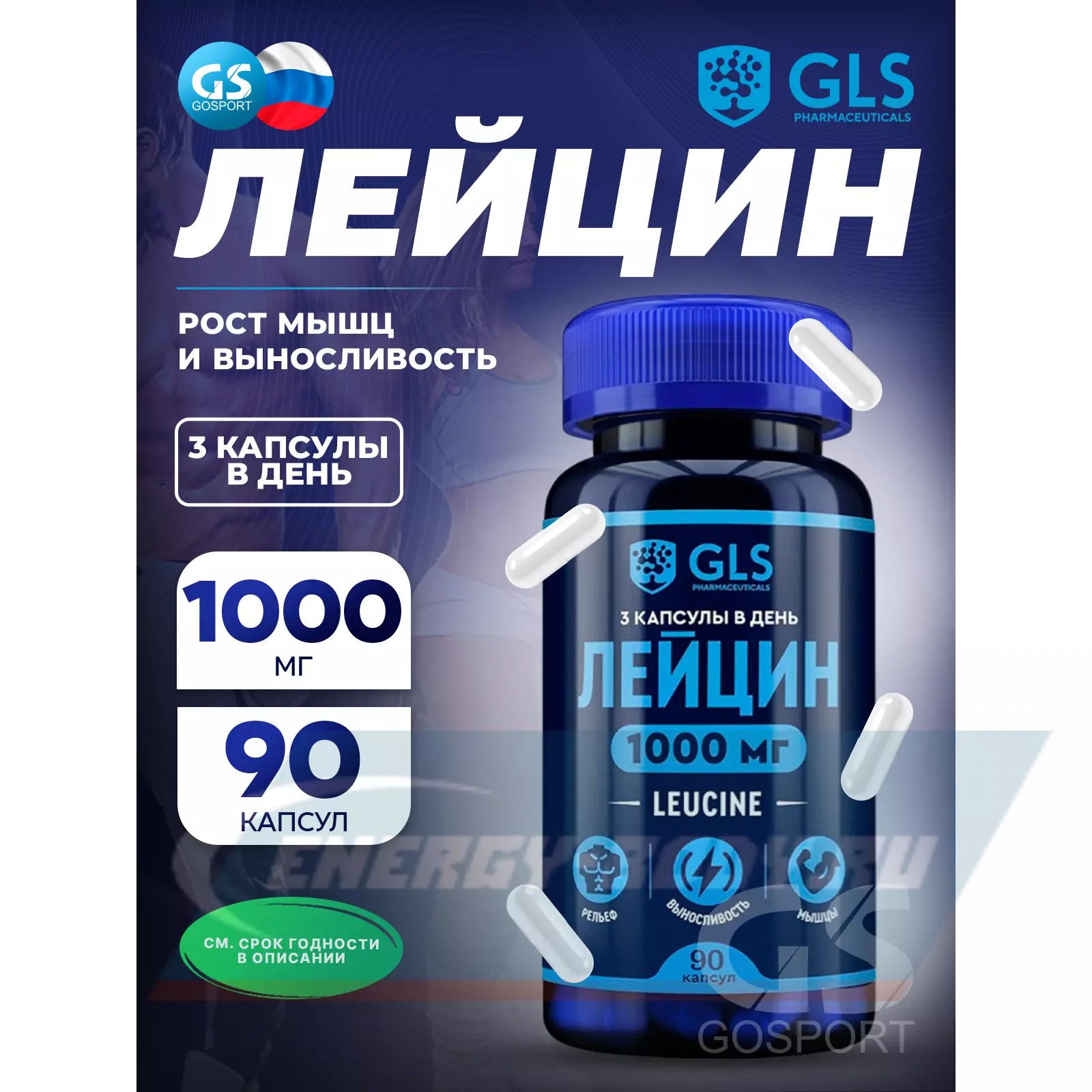 GLS pharmaceuticals Лейцин 1000 мг (L-Leucine) 90 капсул — для наращивания мышечной массы, выносливости и силы