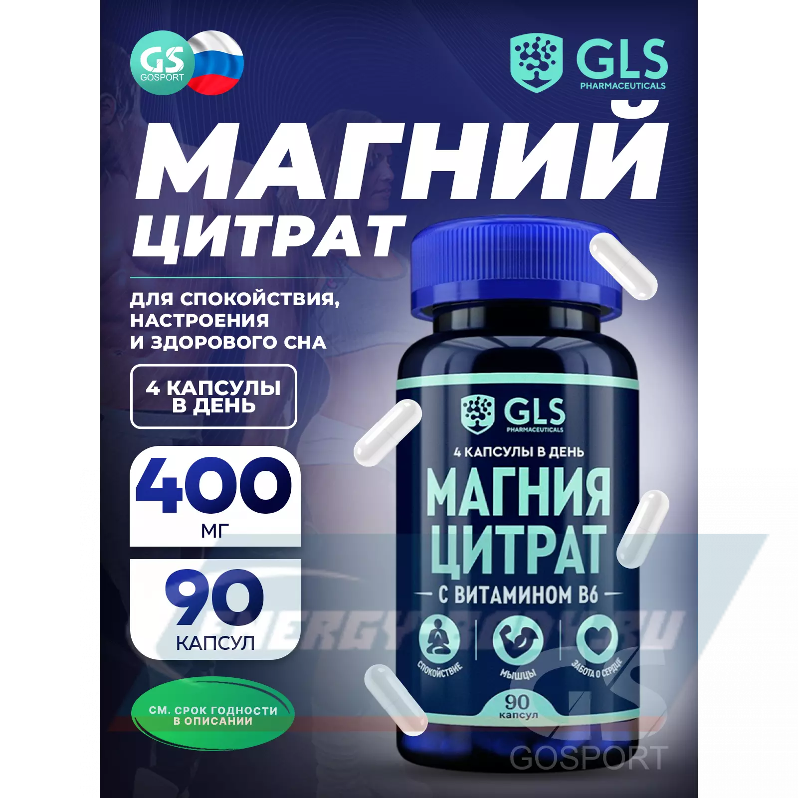 GLS pharmaceuticals Магния цитрат с витамином В6 90 капсул — Для нервной системы, сна и снижения стресса