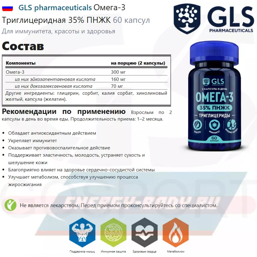 Состав GLS pharmaceuticals Омега-3 Триглицеридная 35% ПНЖК