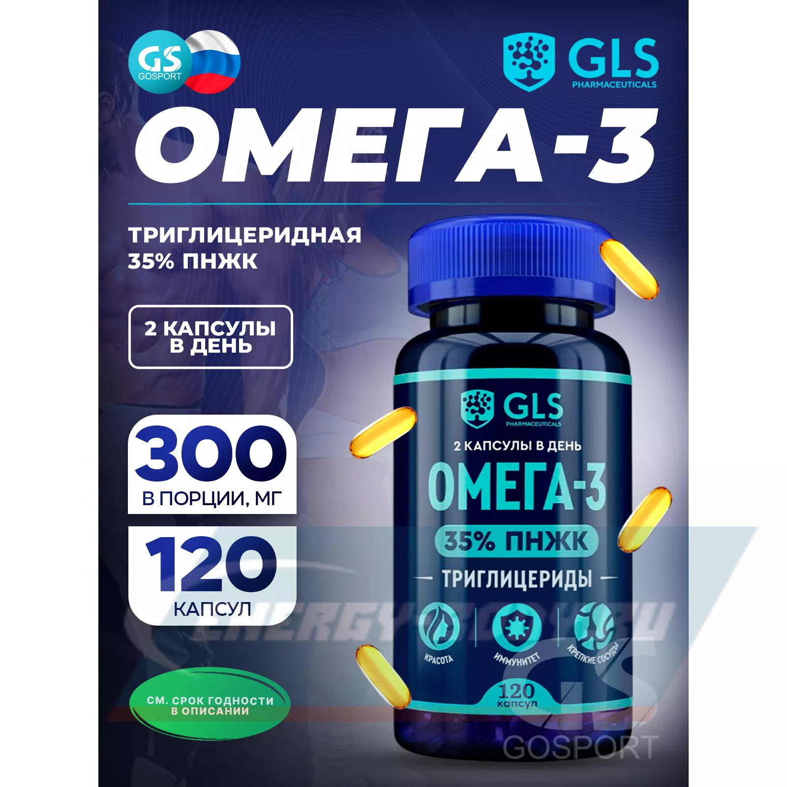 GLS pharmaceuticals Омега-3 Триглицеридная 35% ПНЖК 120 капсул — для сердечно-сосудистой системы и молодости кожи