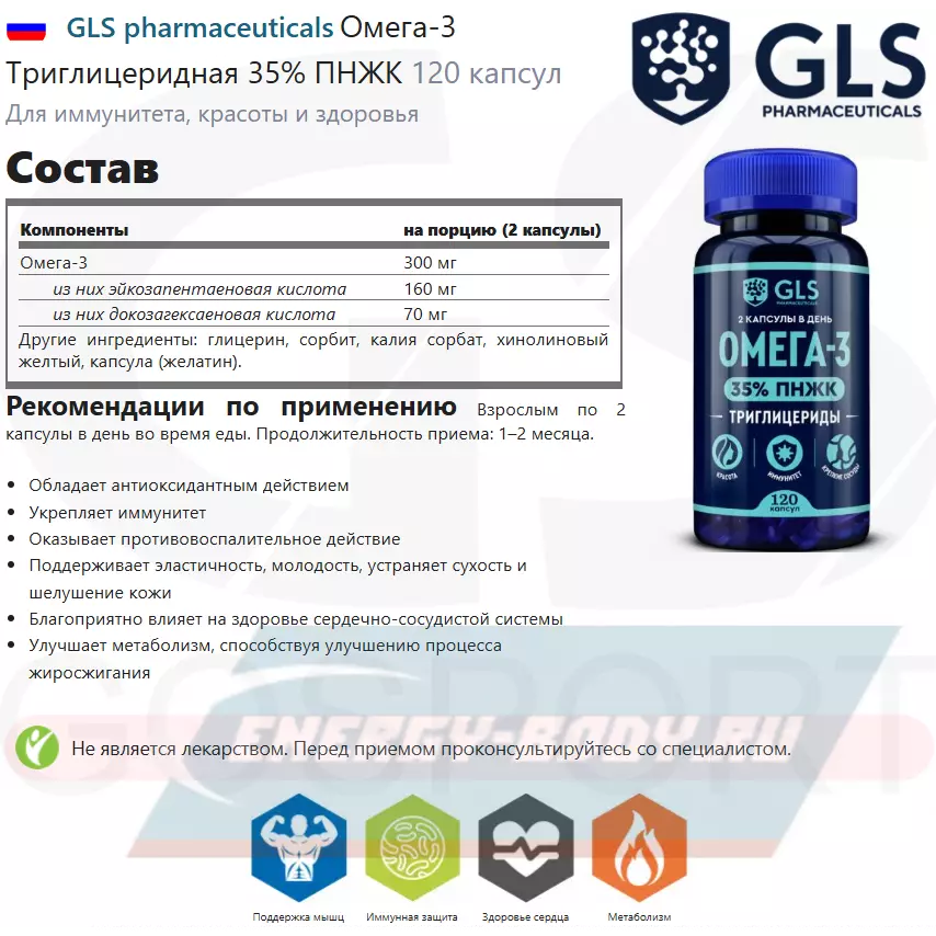 Состав GLS pharmaceuticals Омега-3 Триглицеридная 35% ПНЖК