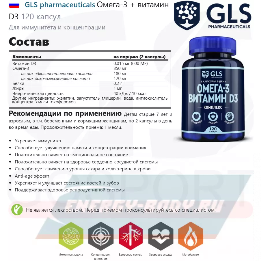 Состав GLS pharmaceuticals Омега-3 + витамин D3