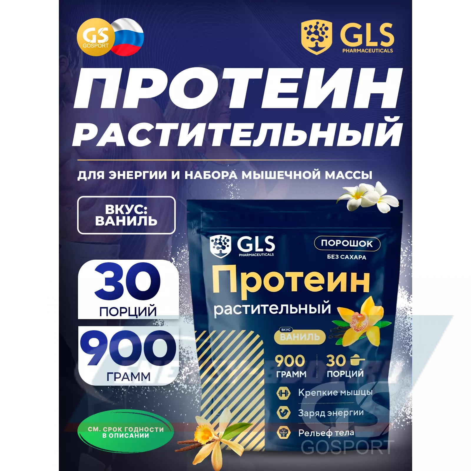 GLS pharmaceuticals Протеин растительный 900 г, Ваниль — для роста мышечной массы и повышения энергии