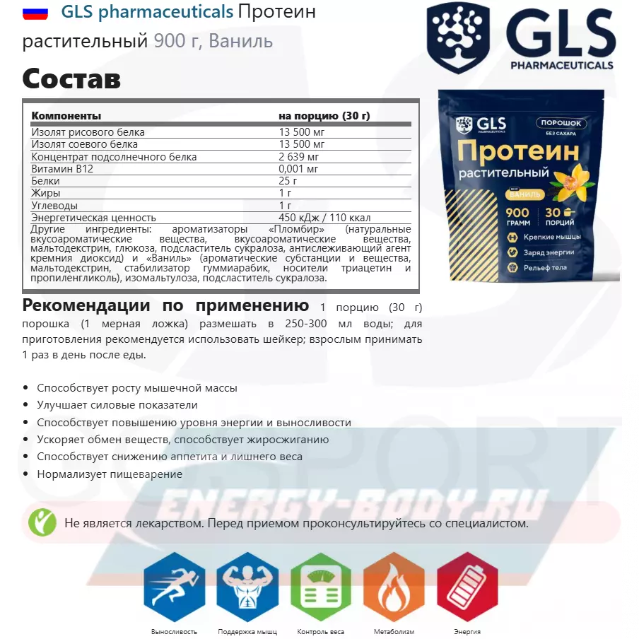 Состав GLS pharmaceuticals Протеин растительный