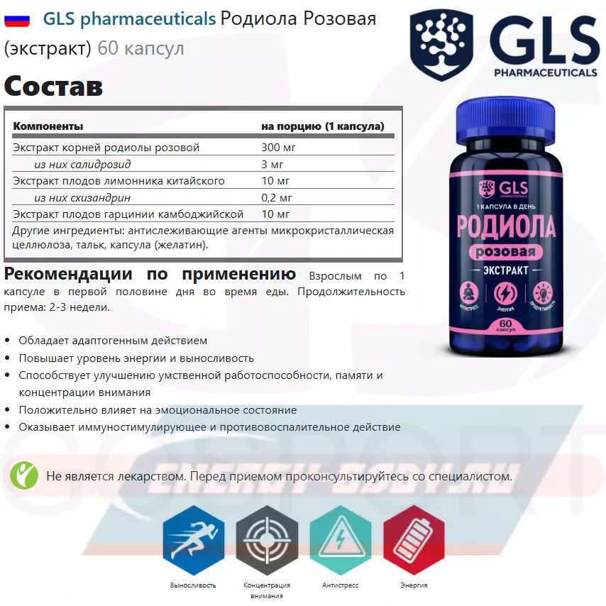 Состав GLS pharmaceuticals Родиола Розовая (экстракт)