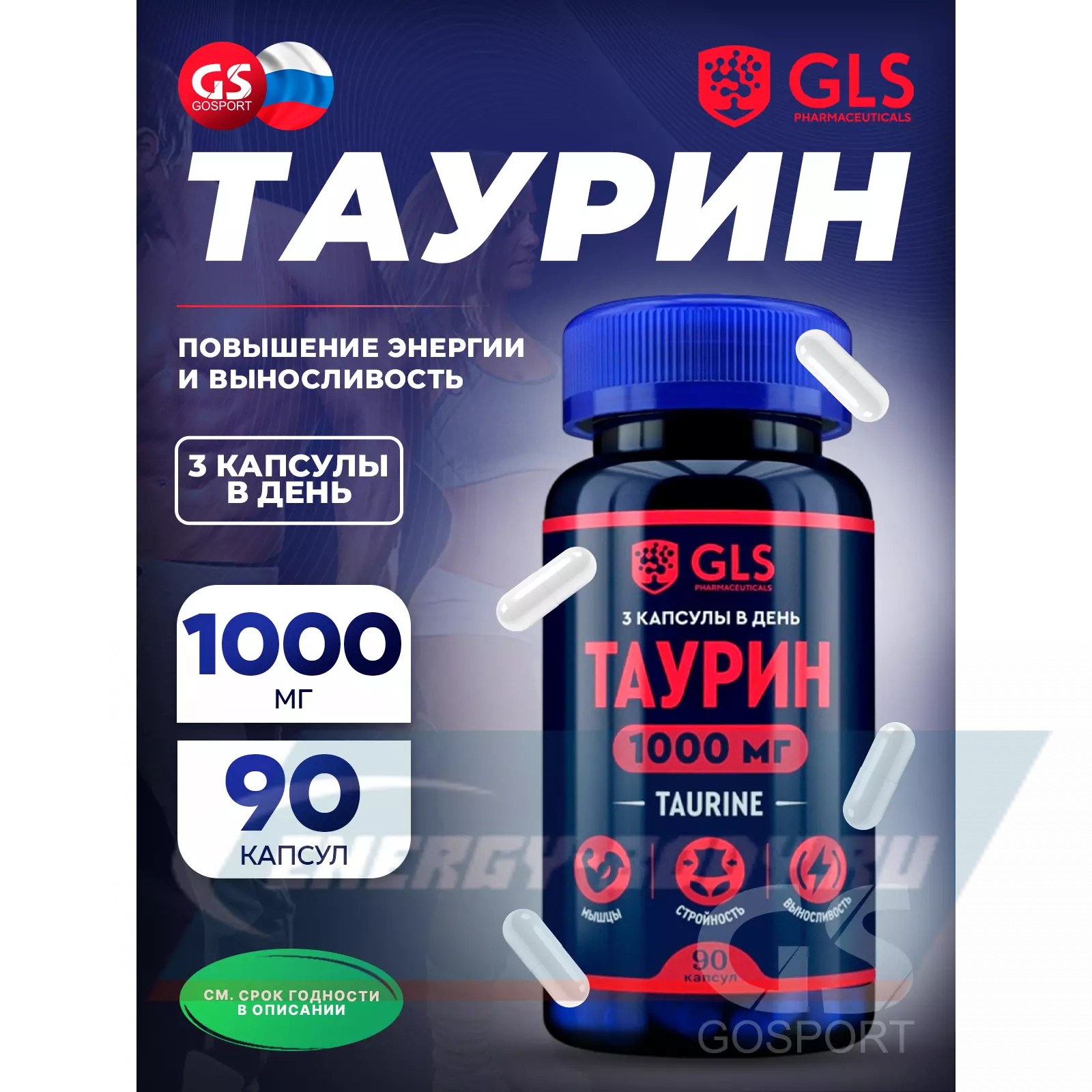 GLS pharmaceuticals Таурин (Taurine) 90 капсул — для выносливости, нервной системы и обмена веществ