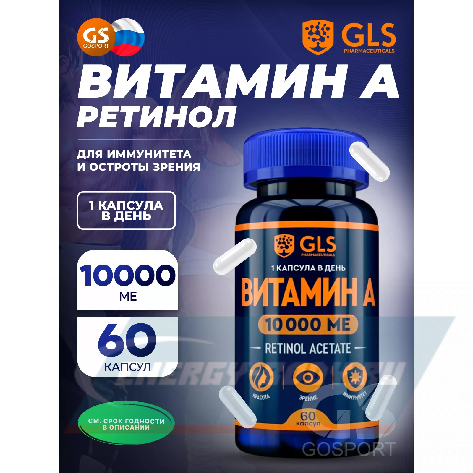 GLS pharmaceuticals Витамин А (ретинола ацетат) 10000 ME 60 капсул — для зрения, иммунитета и кожи