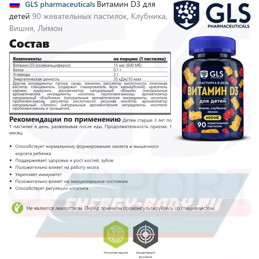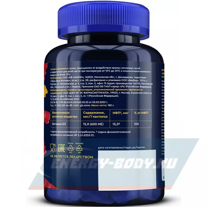 Состав GLS pharmaceuticals Витамин D3 для детей
