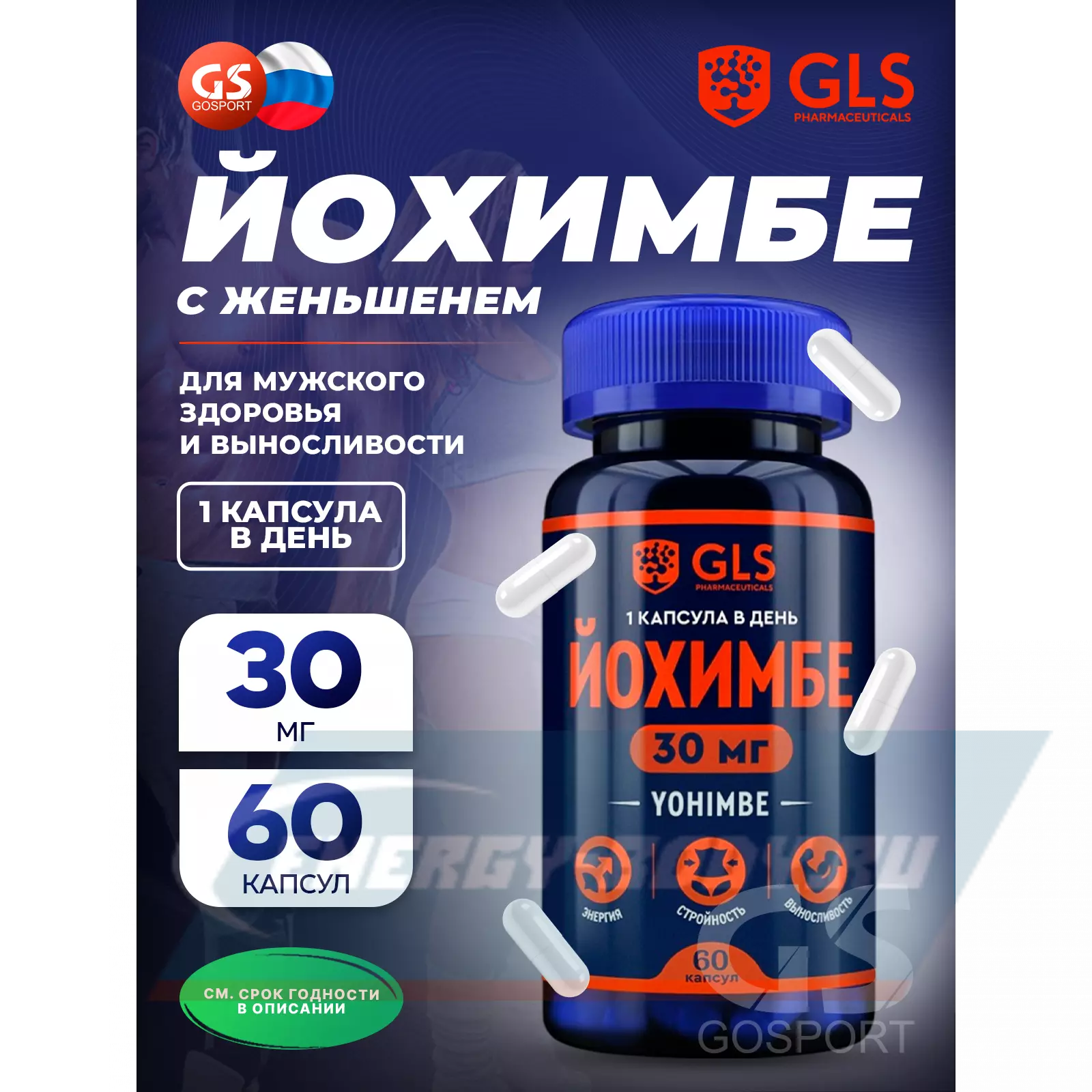GLS pharmaceuticals Йохимбе с женьшенем 60 капсул — для повышения либидо, метаболизма и снижения веса
