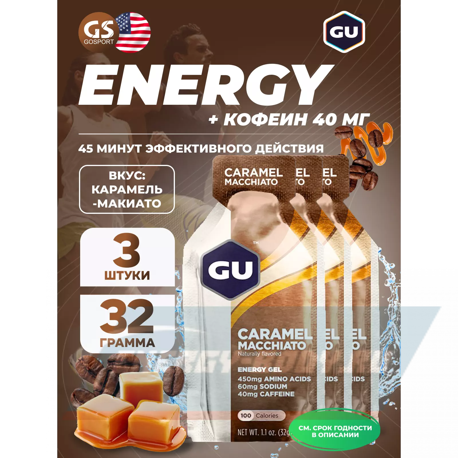 GU Original Energy Gel 40mg caffeine 3 x 32 г, Карамель-Макиато