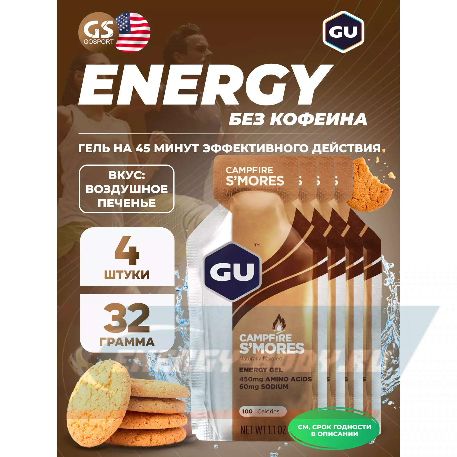 Энергетический гель GU ENERGY GU Original Energy Gel no caffeine 4 x 32 г, Воздушное печенье Энергетический гель GU ENERGY GU Original Energy Gel no caffeine 4 x 32 г, Воздушное печенье Энергетический гель GU ENERGY GU Original Energy Gel no caffeine 4 x 32 г, Воздушное печенье Энергетический гель GU ENERGY GU Original Energy Gel no caffeine 4 x 32 г, Воздушное печенье