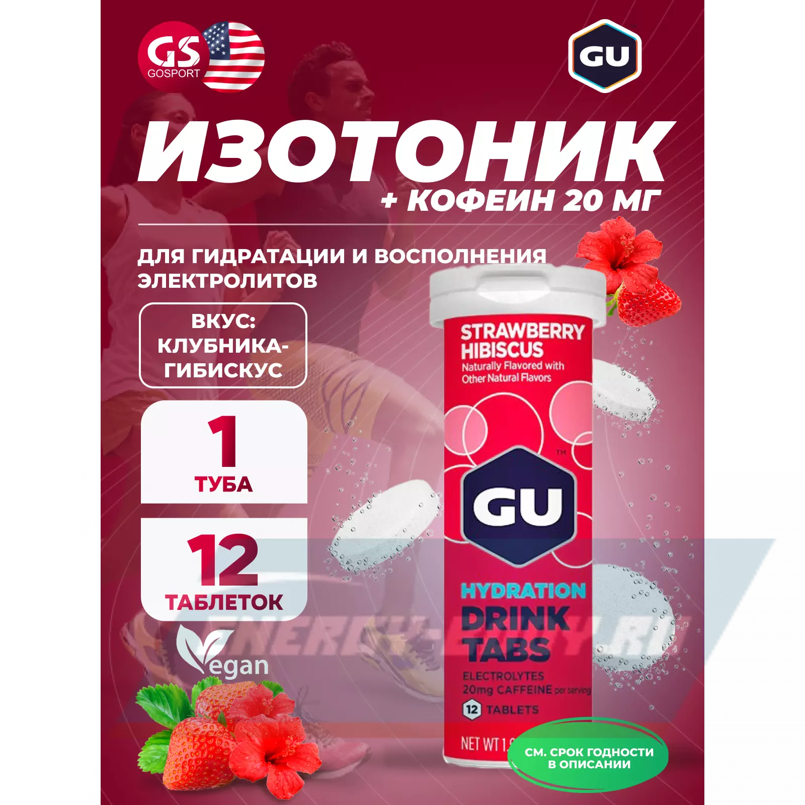 GU HYDRATION DRINK TABS + caffeine 1 x 12 таб, Клубника-Гибискус
