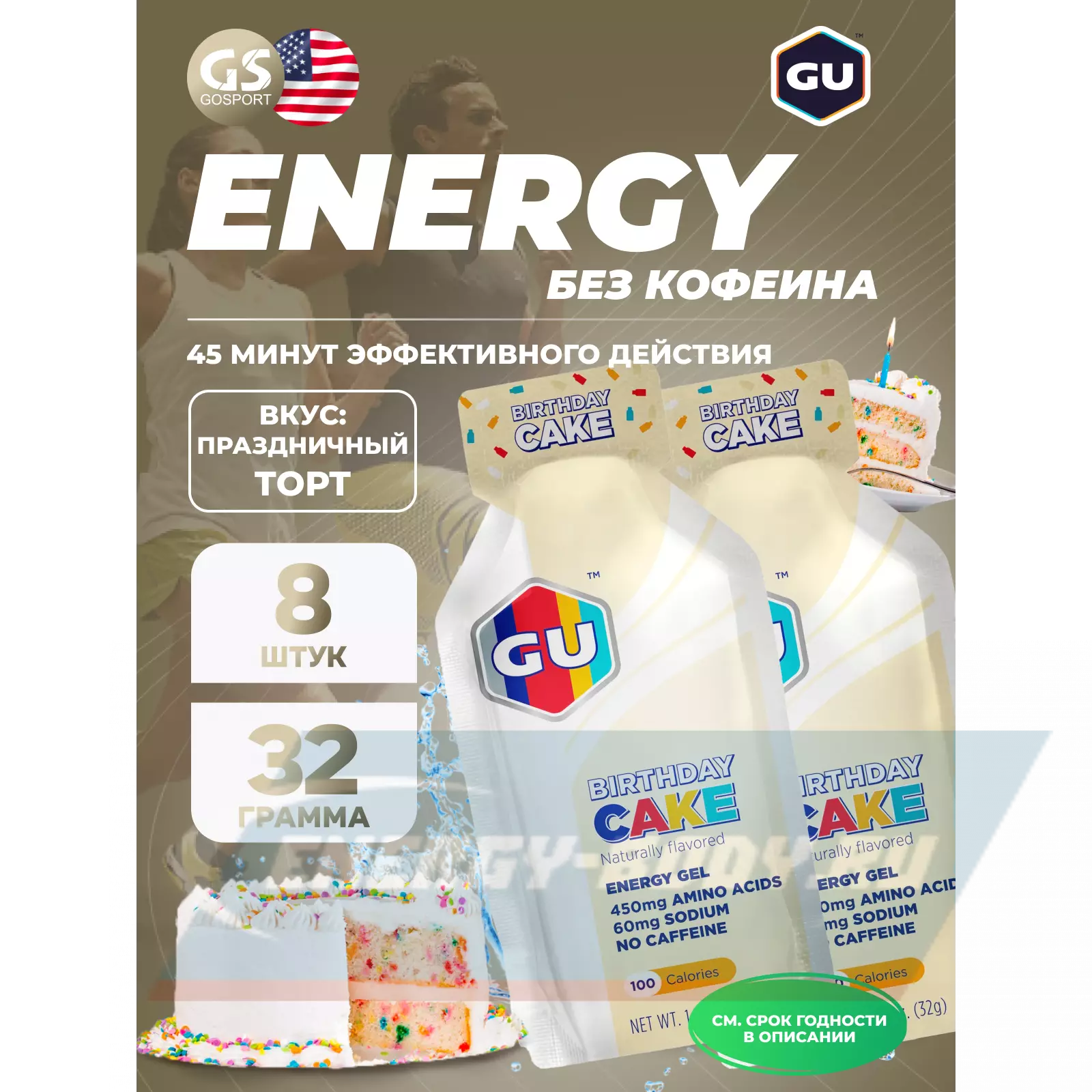 GU Energy Labs GU Original Energy Gel no caffeine 8 x 32 г, Праздничный торт — Высокая калорийность, Два вида углеводов, Лёгкий