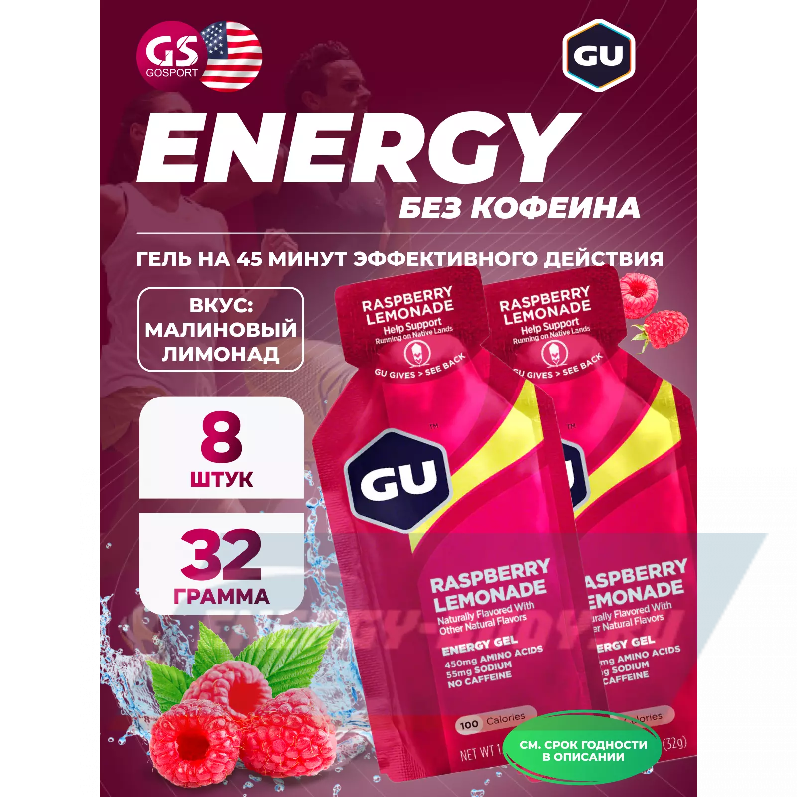 Энергетический гель GU ENERGY GU Original Energy Gel no caffeine 8 x 32 г, Малиновый лимонад Энергетический гель GU ENERGY GU Original Energy Gel no caffeine 8 x 32 г, Малиновый лимонад Энергетический гель GU ENERGY GU Original Energy Gel no caffeine 8 x 32 г, Малиновый лимонад Энергетический гель GU ENERGY GU Original Energy Gel no caffeine 8 x 32 г, Малиновый лимонад