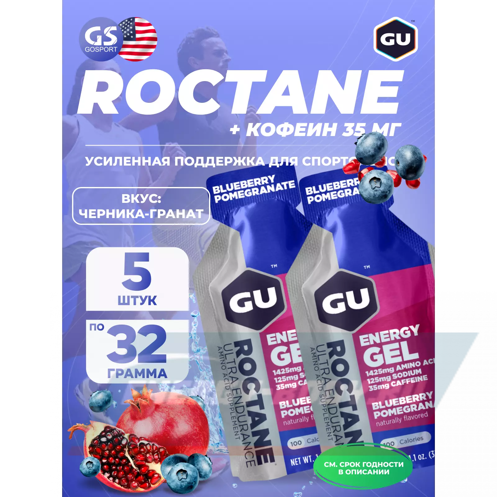 GU ENERGY GU ROCTANE Energy Gel 35mg caffeine 5 x 32 г, Черника-Гранат — Для выносливости и водно-солевого баланса