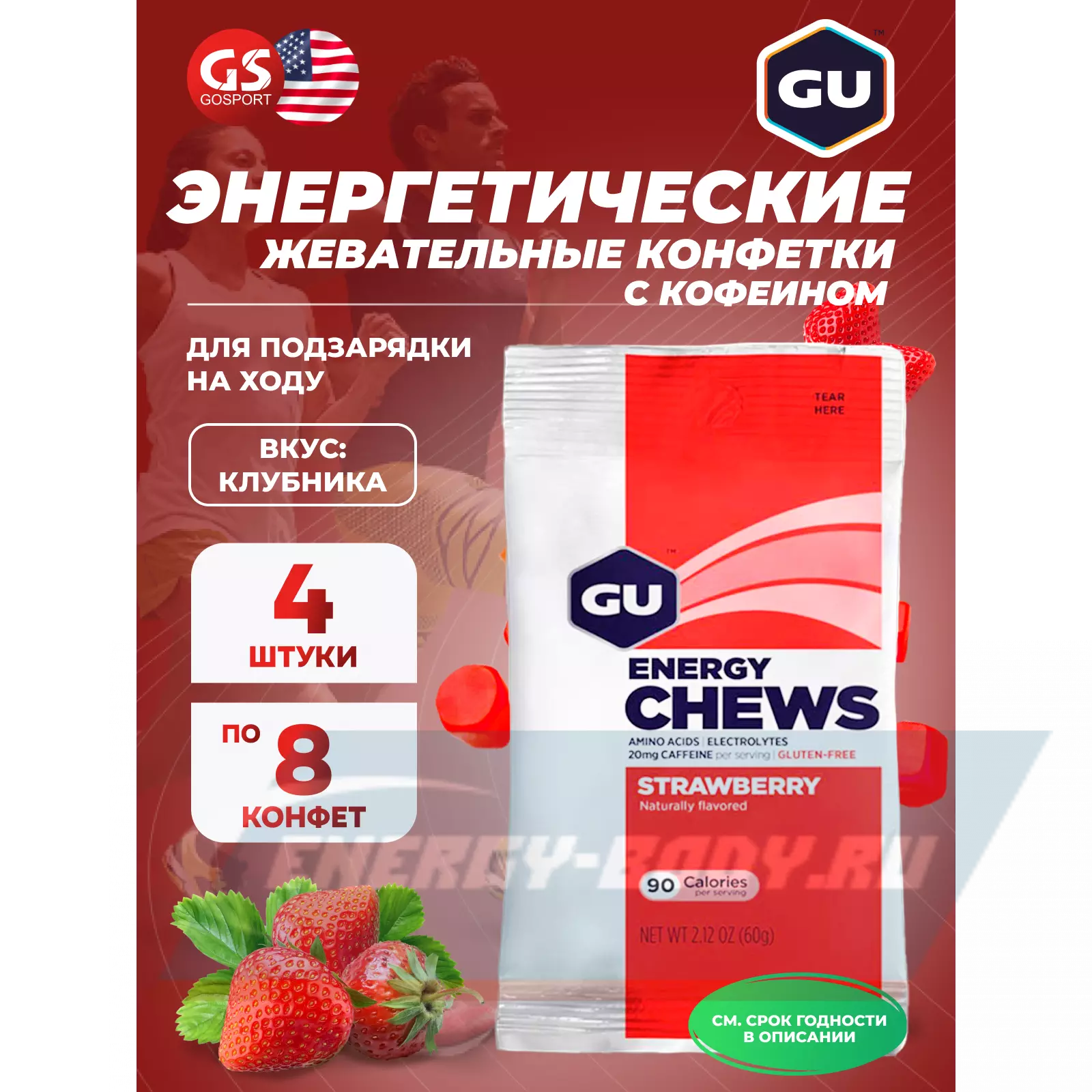 GU Energy Labs Мармеладки GU Energy Chews 4 x 60 г, Клубника — Быстрое и длительное снабжение энергией