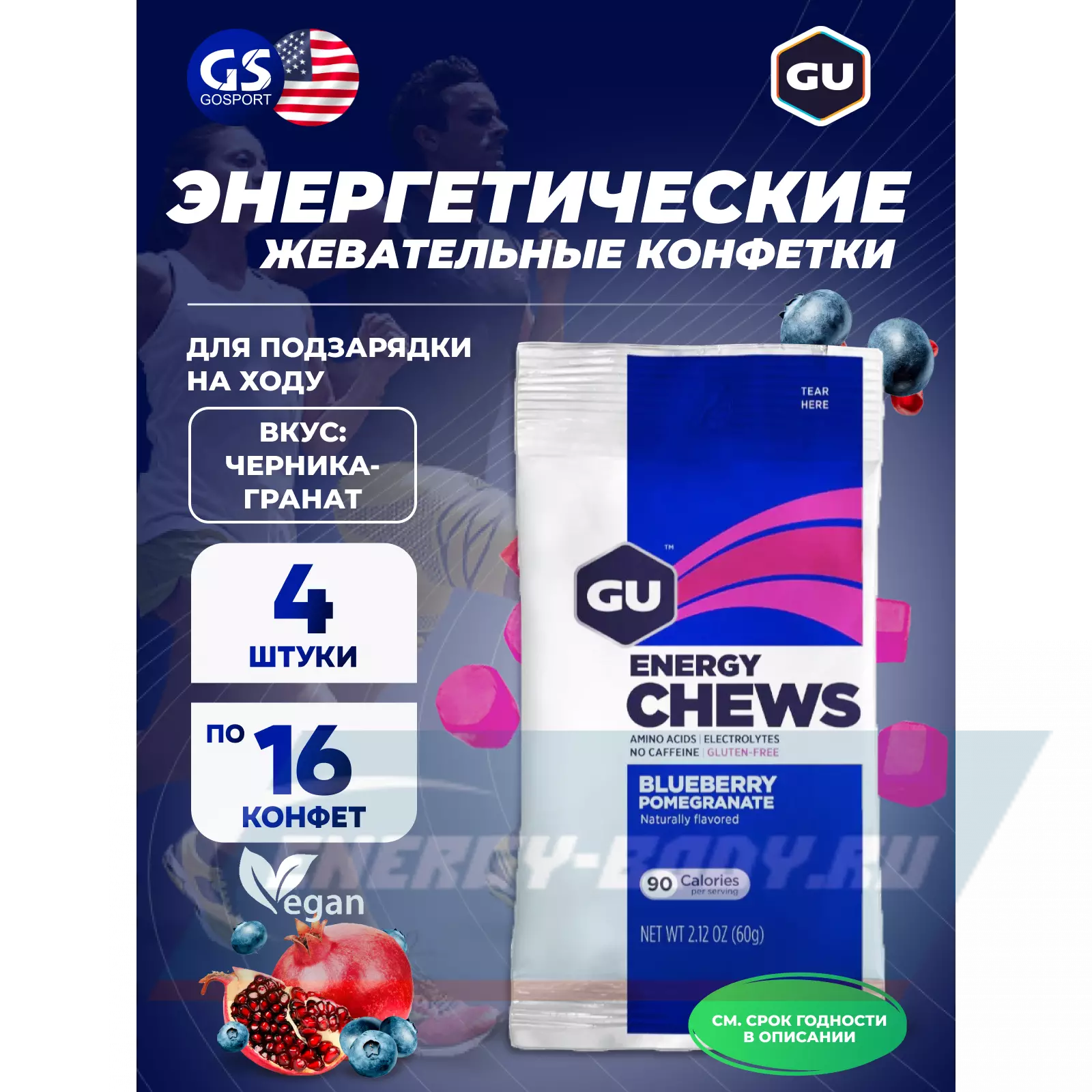 GU Energy Labs Мармеладки GU Energy Chews 4 x 60 г, Черника-Гранат — Быстрое и длительное снабжение энергией