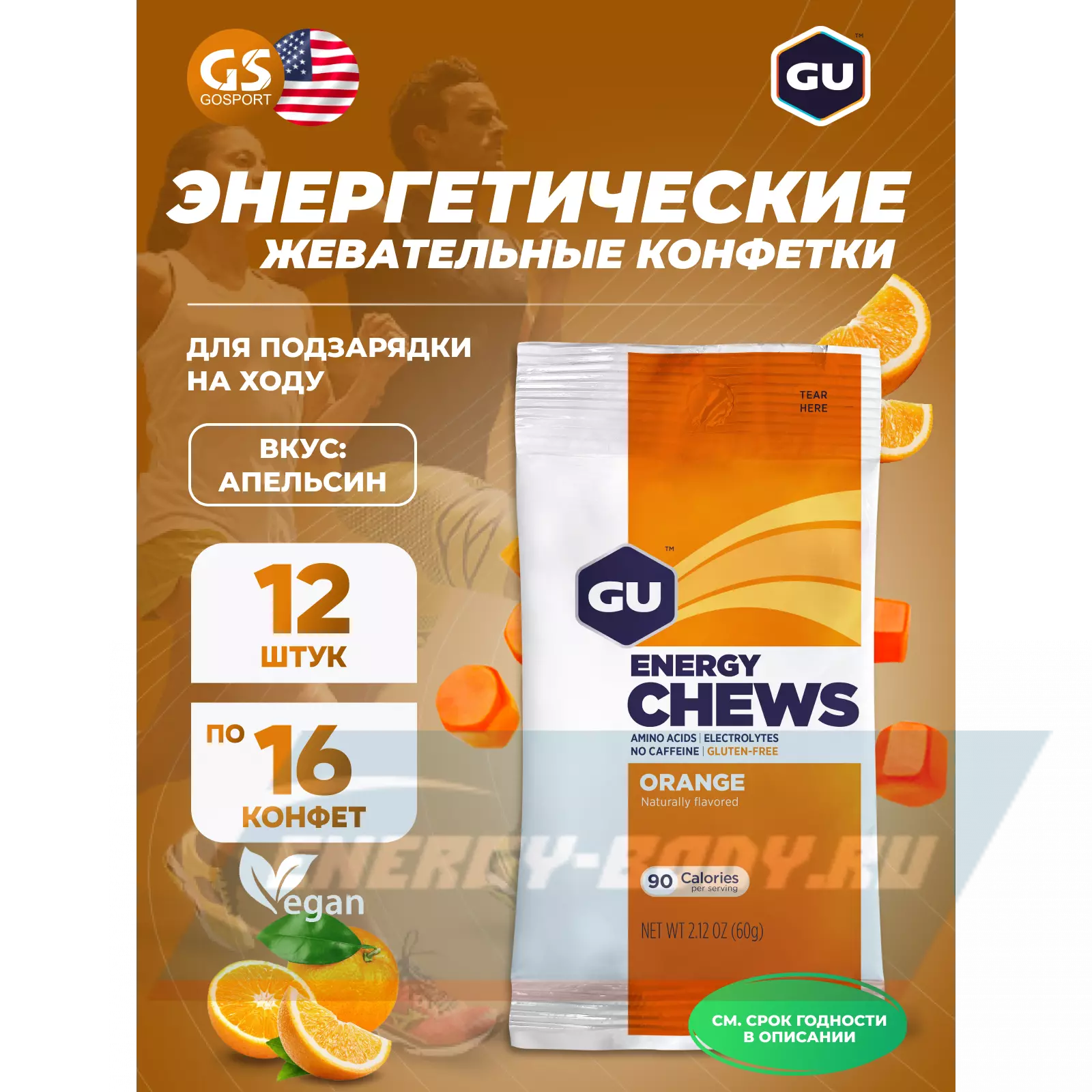 GU Energy Labs Мармеладки GU Energy Chews 12 x 60 г, Апельсин — Быстрое и длительное снабжение энергией