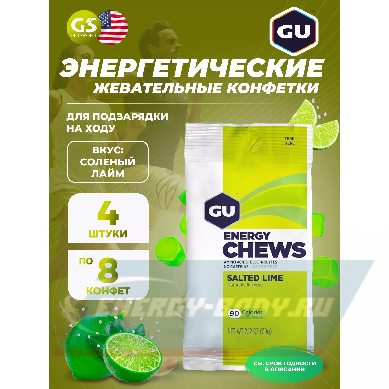 GU Energy Labs Мармеладки GU Energy Chews 4 x 60 г, Соленый лайм — Быстрое и длительное снабжение энергией