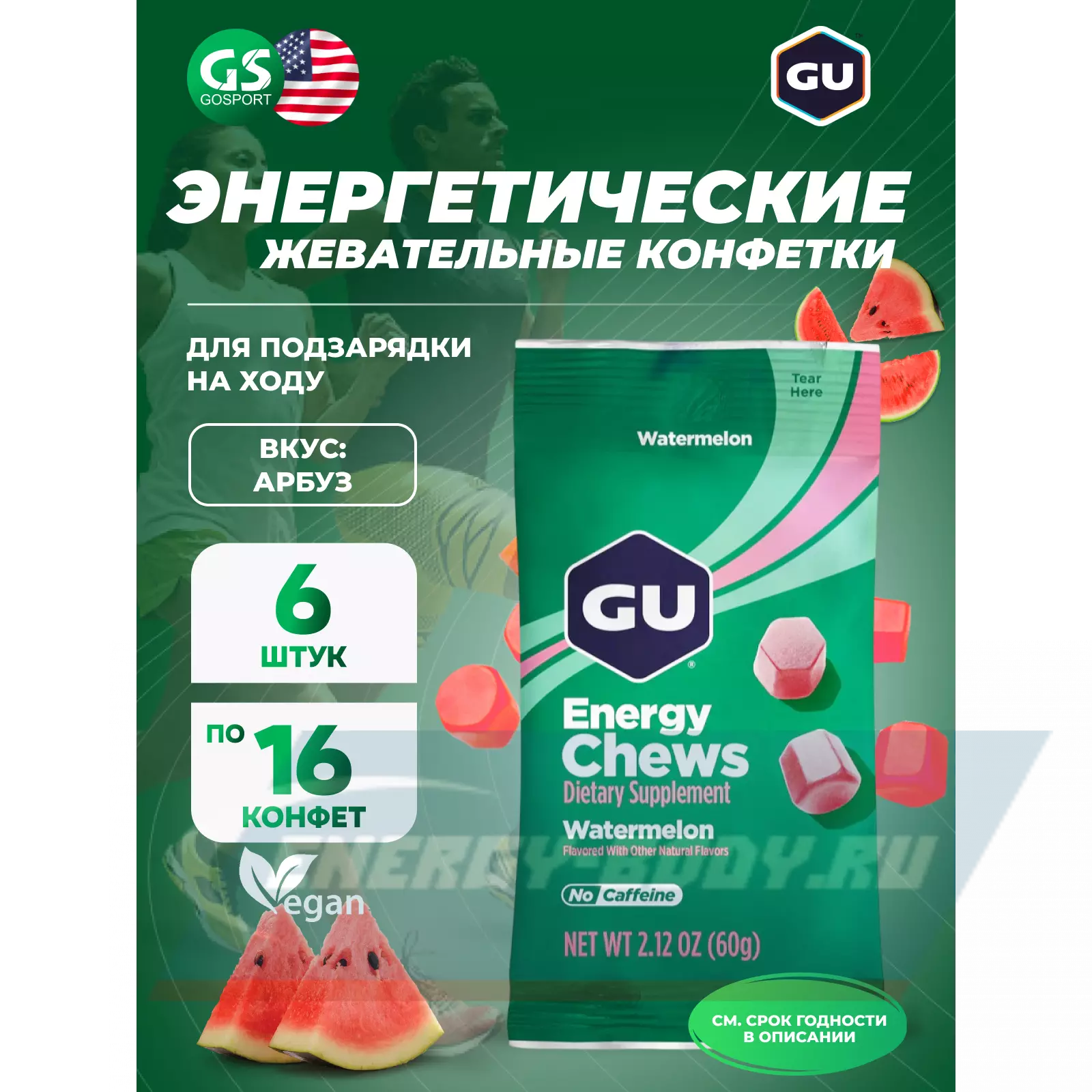 GU ENERGY Мармеладки GU Energy Chews 6 x 60 г, Арбуз — Быстрое и длительное снабжение энергией