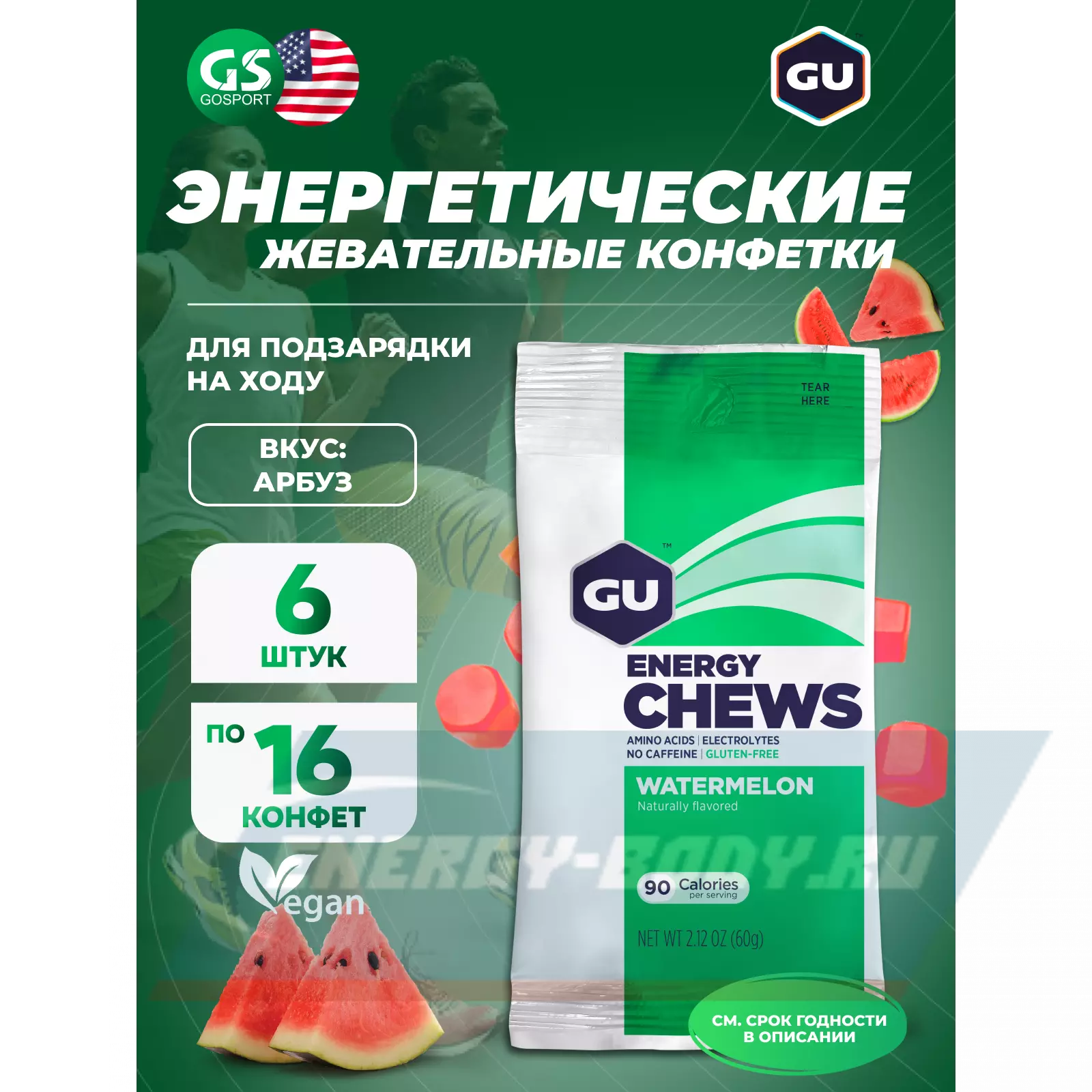 GU Energy Labs Мармеладки GU Energy Chews 6 x 60 г, Арбуз — Быстрое и длительное снабжение энергией