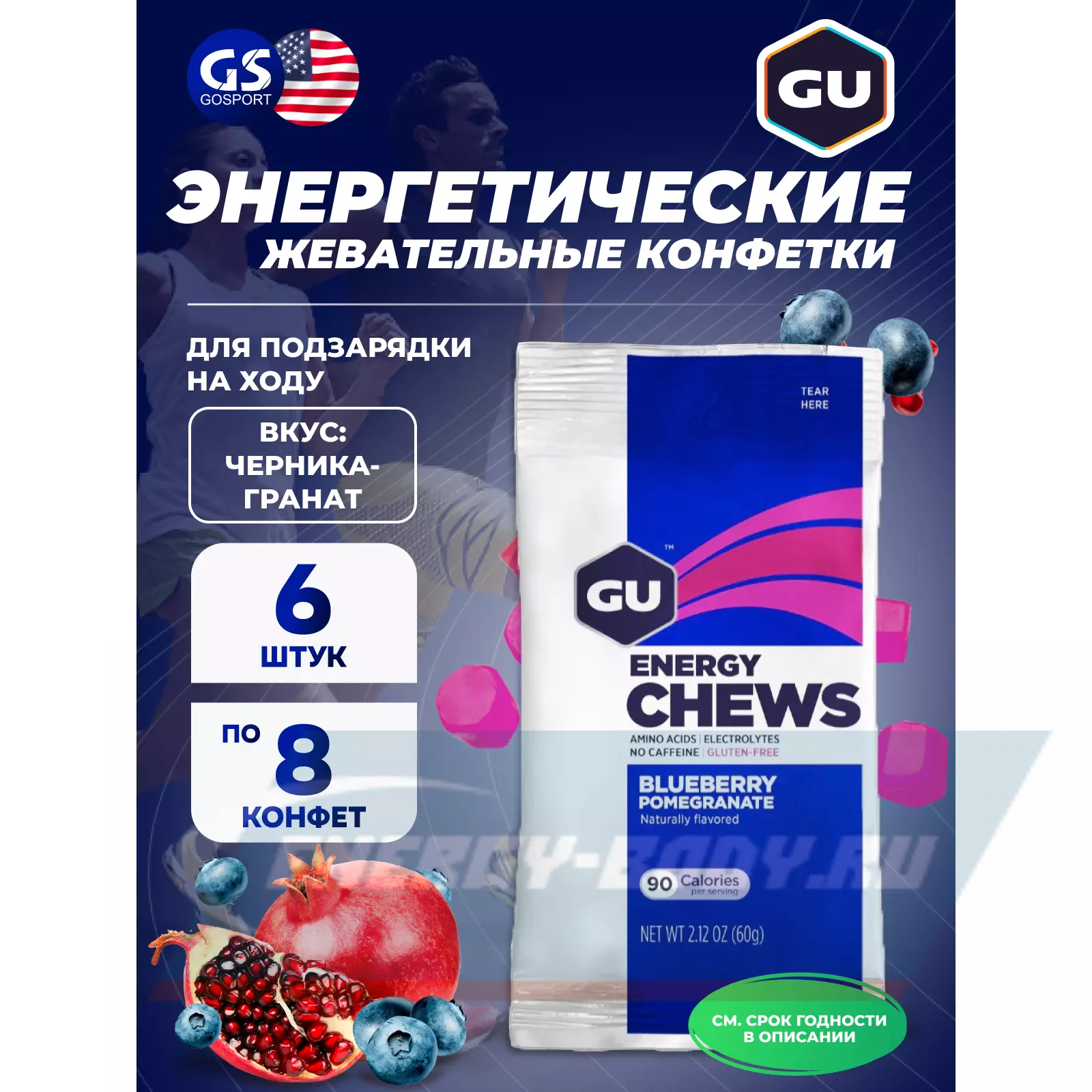 GU Energy Labs Мармеладки GU Energy Chews 6 x 60 г, Черника-Гранат — Быстрое и длительное снабжение энергией