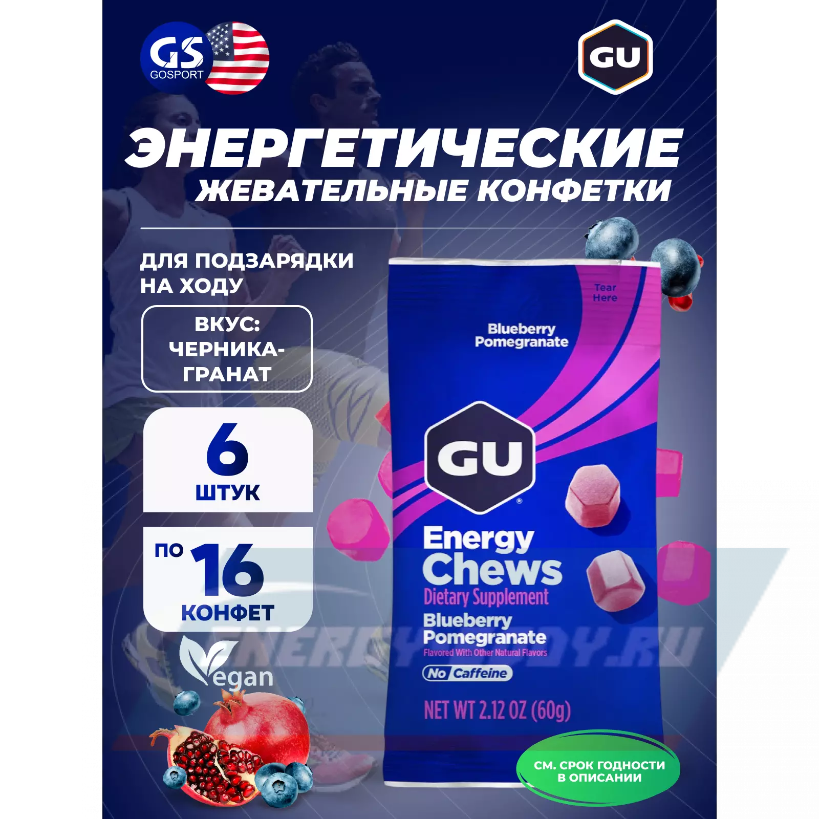 GU ENERGY Мармеладки GU Energy Chews 6 x 60 г, Черника-Гранат — Быстрое и длительное снабжение энергией