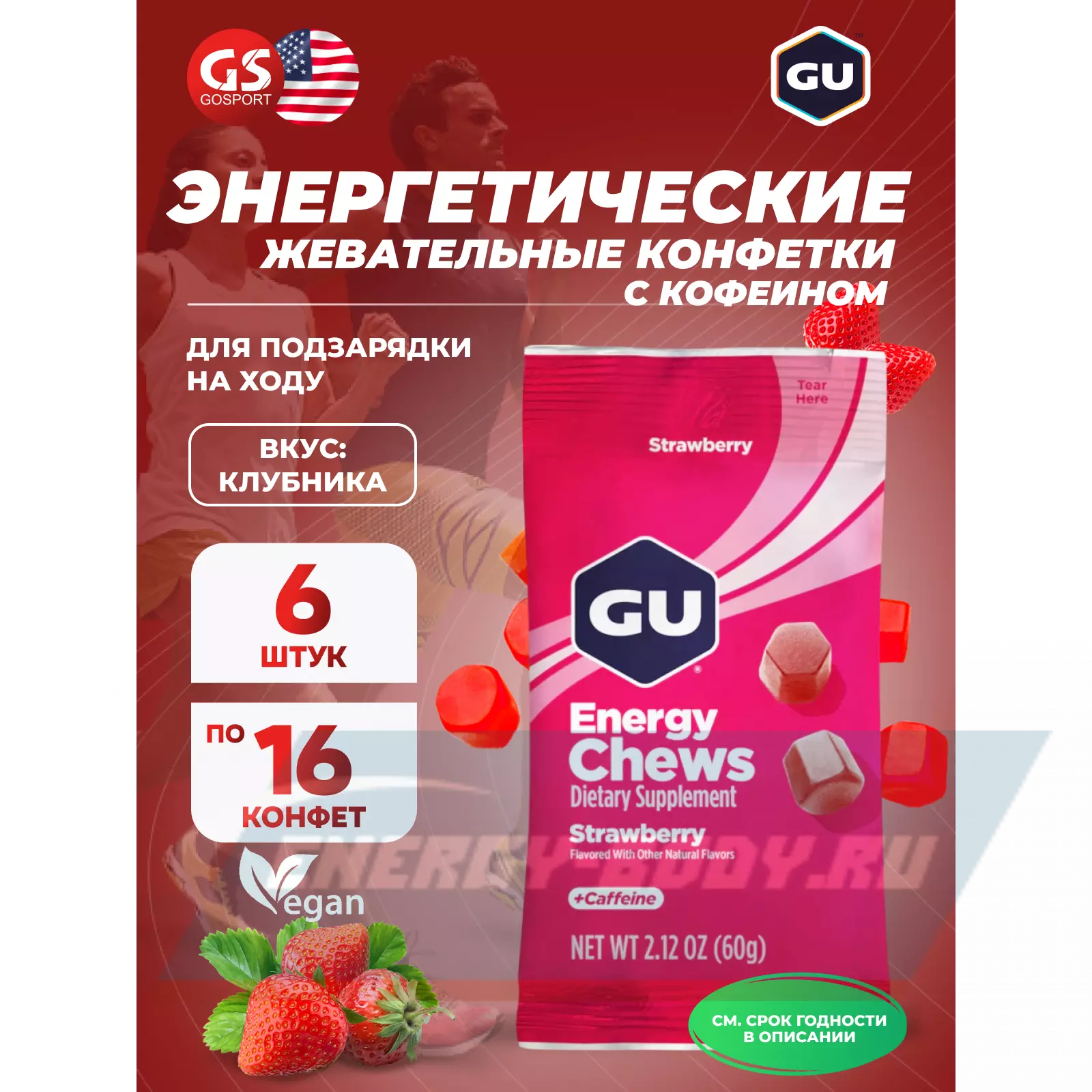 GU ENERGY Мармеладки GU Energy Chews 6 x 60 г, Клубника — Быстрое и длительное снабжение энергией