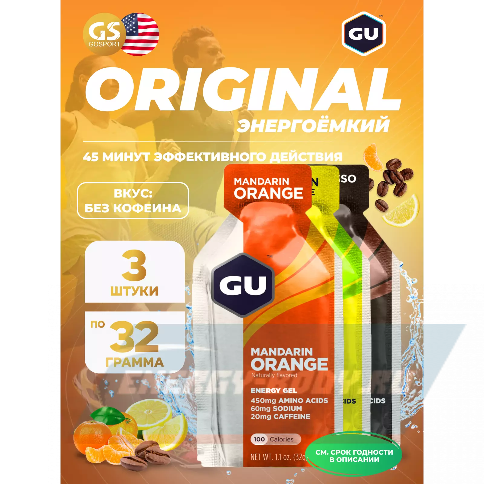 GU Energy Labs Gel MIX 3 x 32 г, Апельсин,Экспрессо,Лимон — Для выносливости и водно-солевого баланса