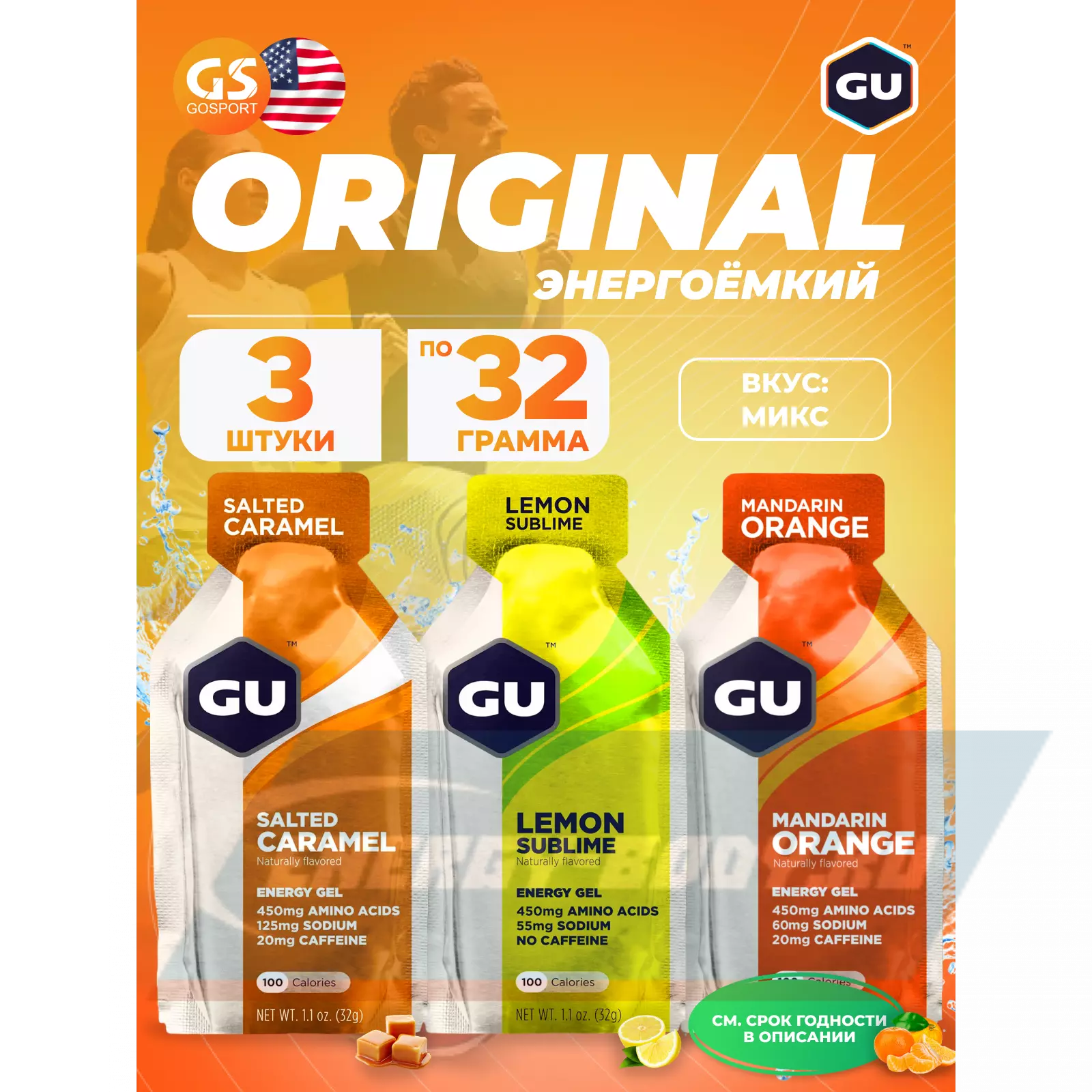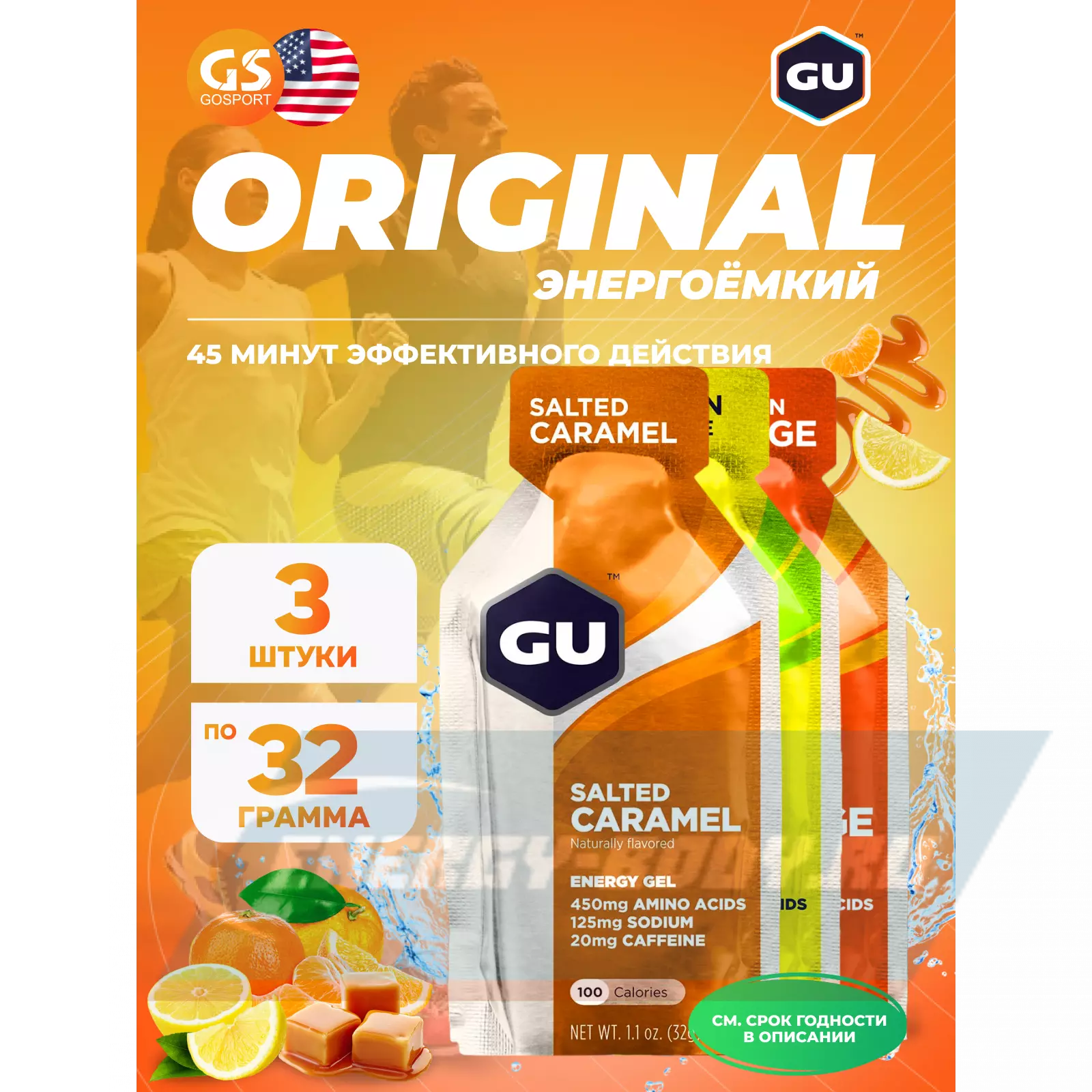 GU ENERGY Gel MIX 3 x 32 г, Апельсин,Сольеная Карамель,Лимон — Для выносливости и водно-солевого баланса