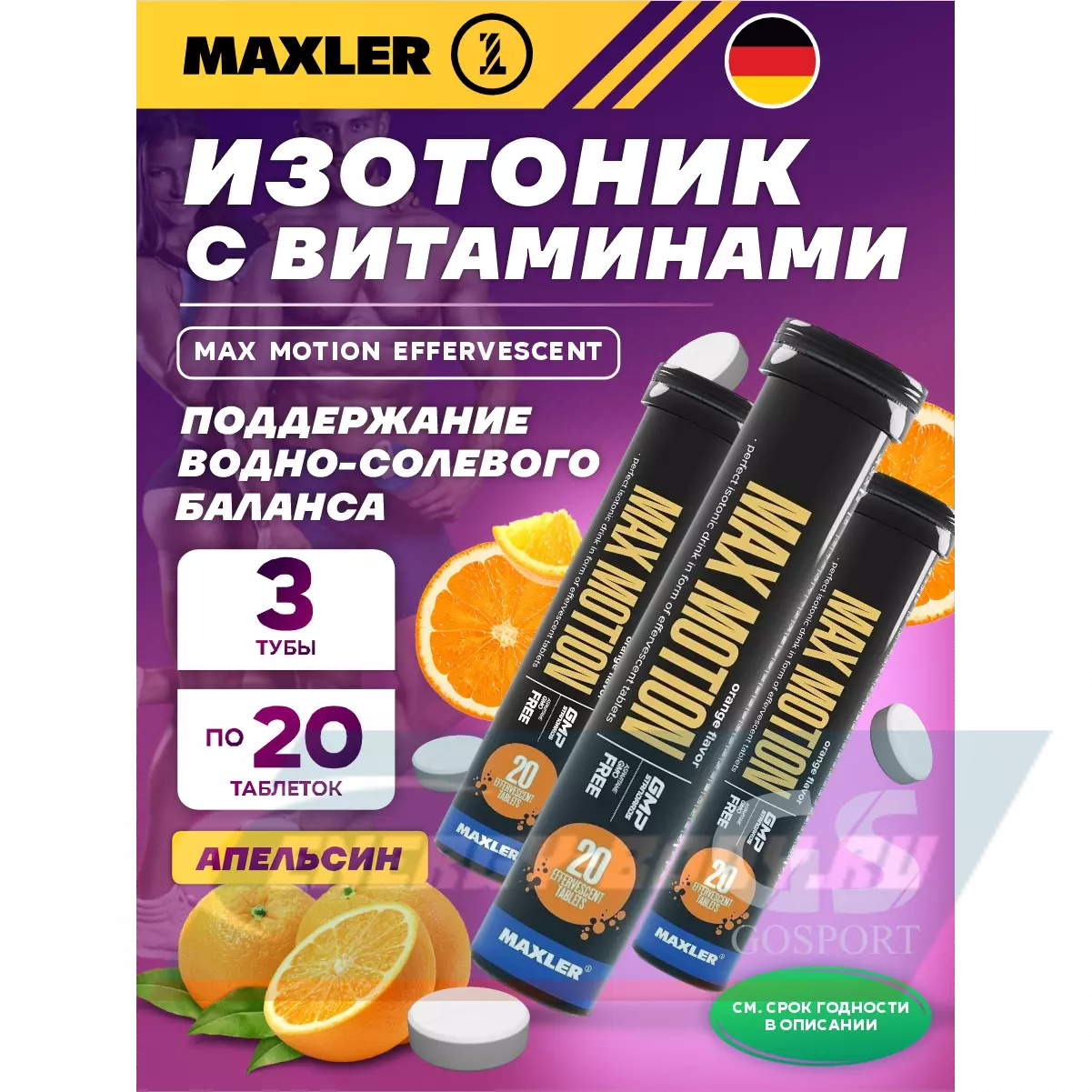 MAXLER Max Motion Effervescent 3х20 шипучих таблеток, Апельсин — Восстановление и поддержание водно-солевого баланса