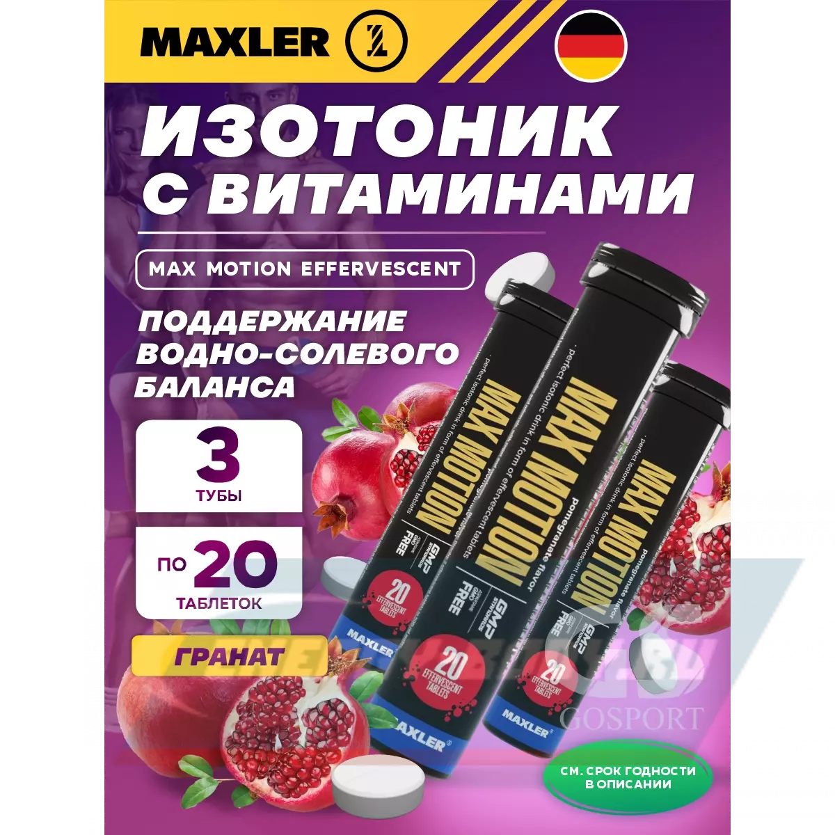 MAXLER Max Motion Effervescent 3х20 шипучих таблеток, Гранат — Восстановление и поддержание водно-солевого баланса