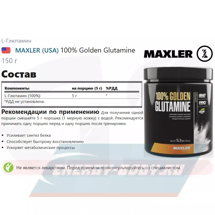 Одним из ключевых этапов в повседневной жизни любого активного человека является восстановление после тренировки. Отдых гарантирует, что ваши мышцы получат время для восстановления запасов гликогена и устранения любых повреждений, вызванных тренировкой. Чтобы помочь своим мышцам после тренировки, попробуйте Maxler 100% Golden Glutamine.