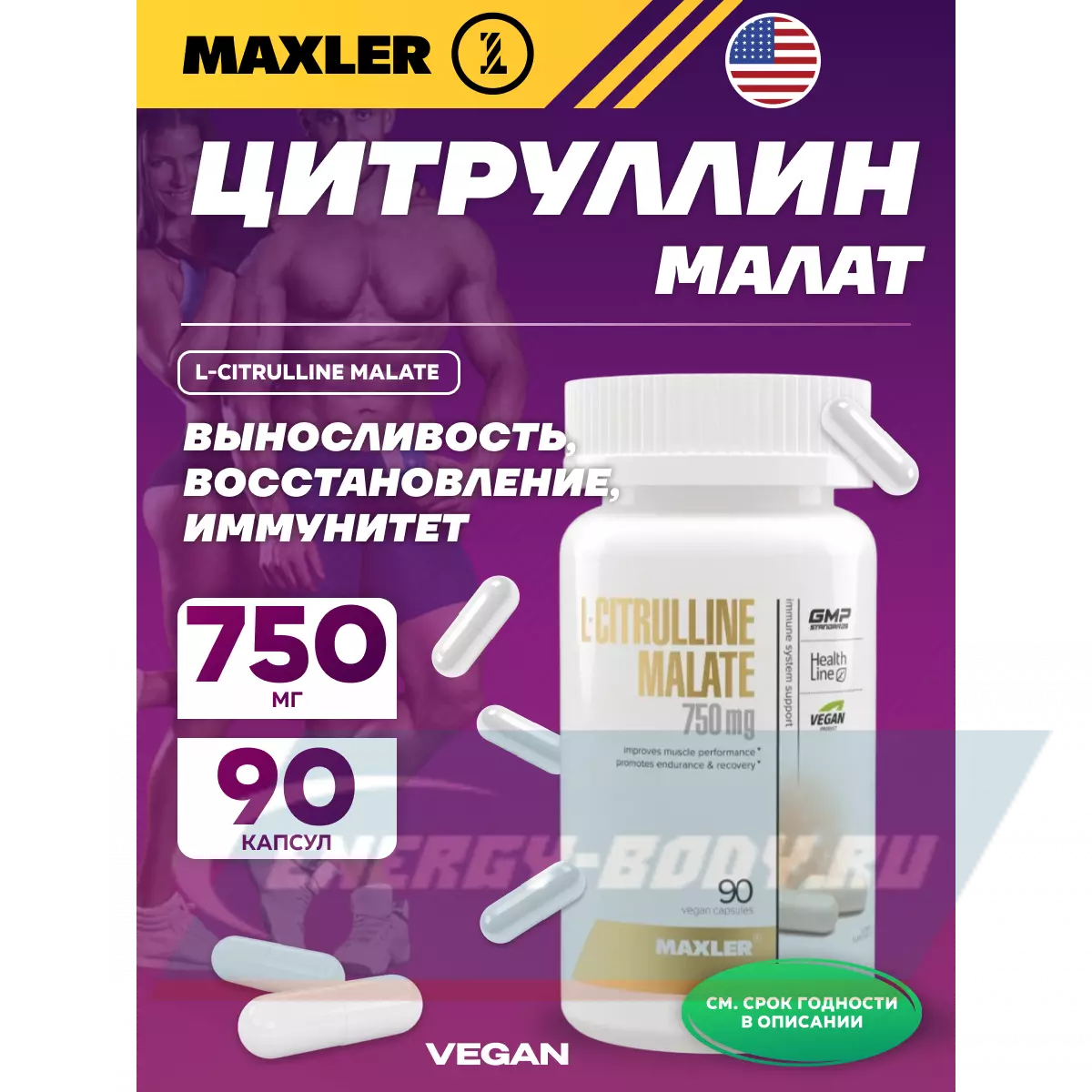 MAXLER Аминокислота цитруллин L-Citrulline Malate 750 mg 90 веганских капсул