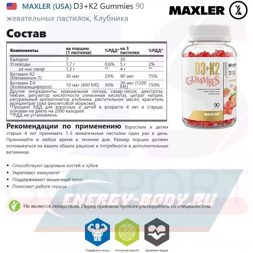 D3+K2 gummies - идеальная добавка для взрослых и детей, ведущих активный образ жизни.