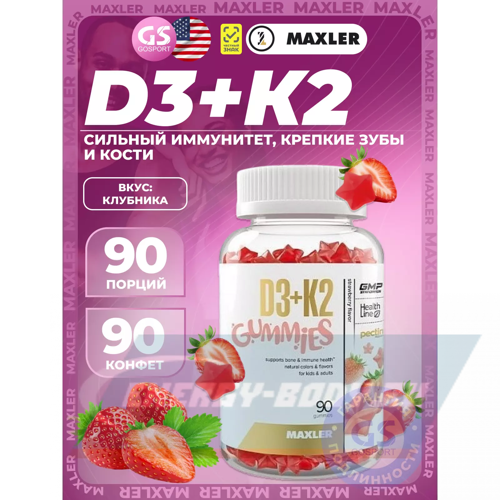 D3+K2 Gummies 90 жевательных пастилок, Клубника