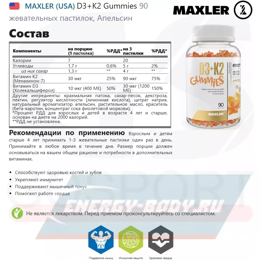 D3+K2 gummies - идеальная добавка для взрослых и детей, ведущих активный образ жизни.