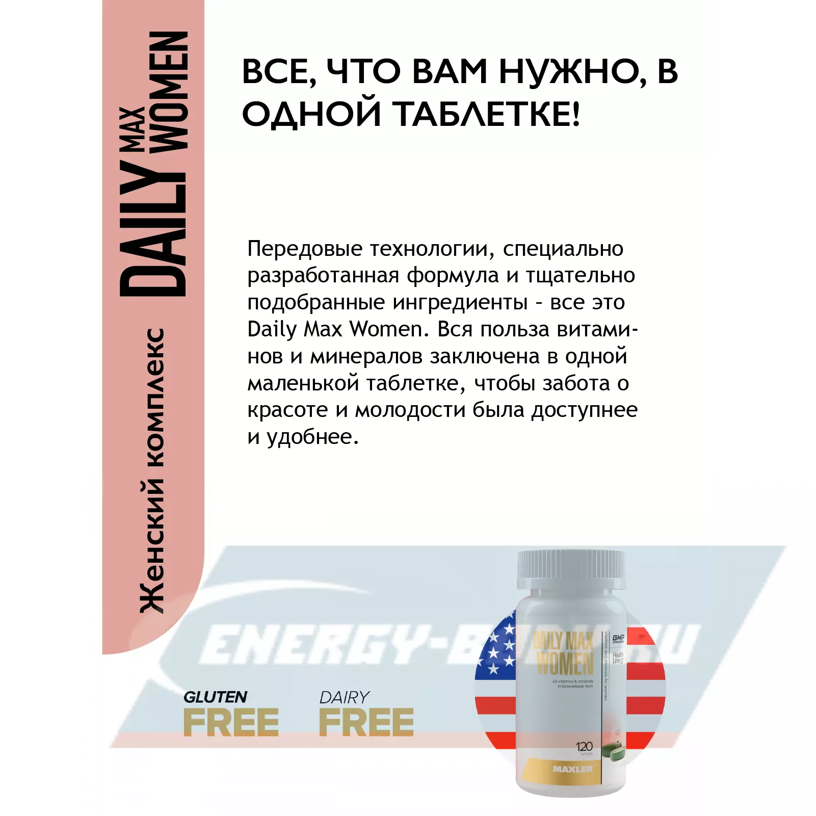 Комплекс Daily Max Women разработан специально для женщин. Он помогает сохранить красоту, репродуктивное здоровье, жизненный тонус, спокойствие, а также способствует сопротивлению инфекциям.